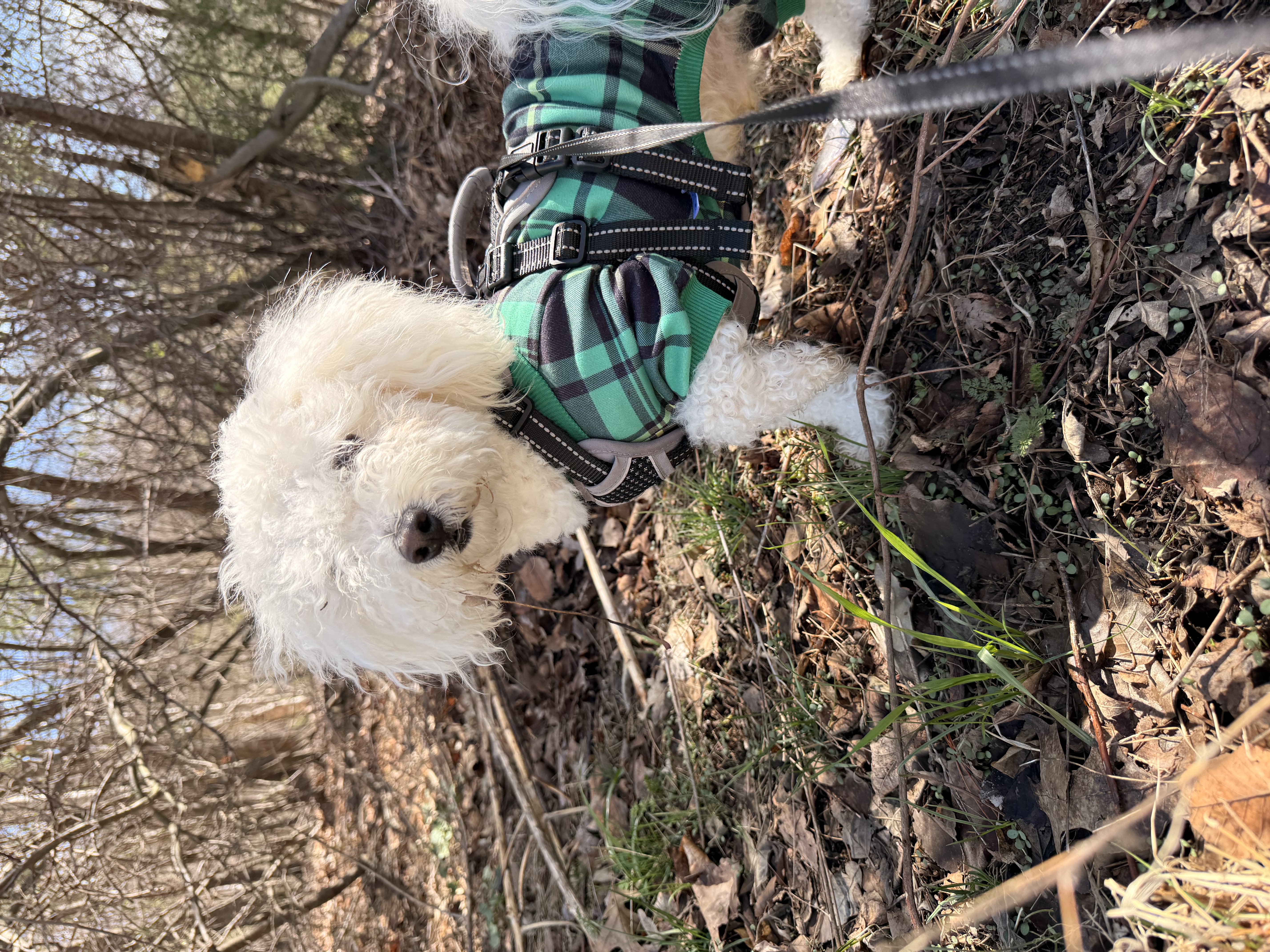 ... more ...The warmth of the air has been so positive for everyone’s moods including Mylo. Even though he is getting hotter way faster he’s enjoying the fresh new smells of all the growing grass and trees. Mylo waddled along nicely today…