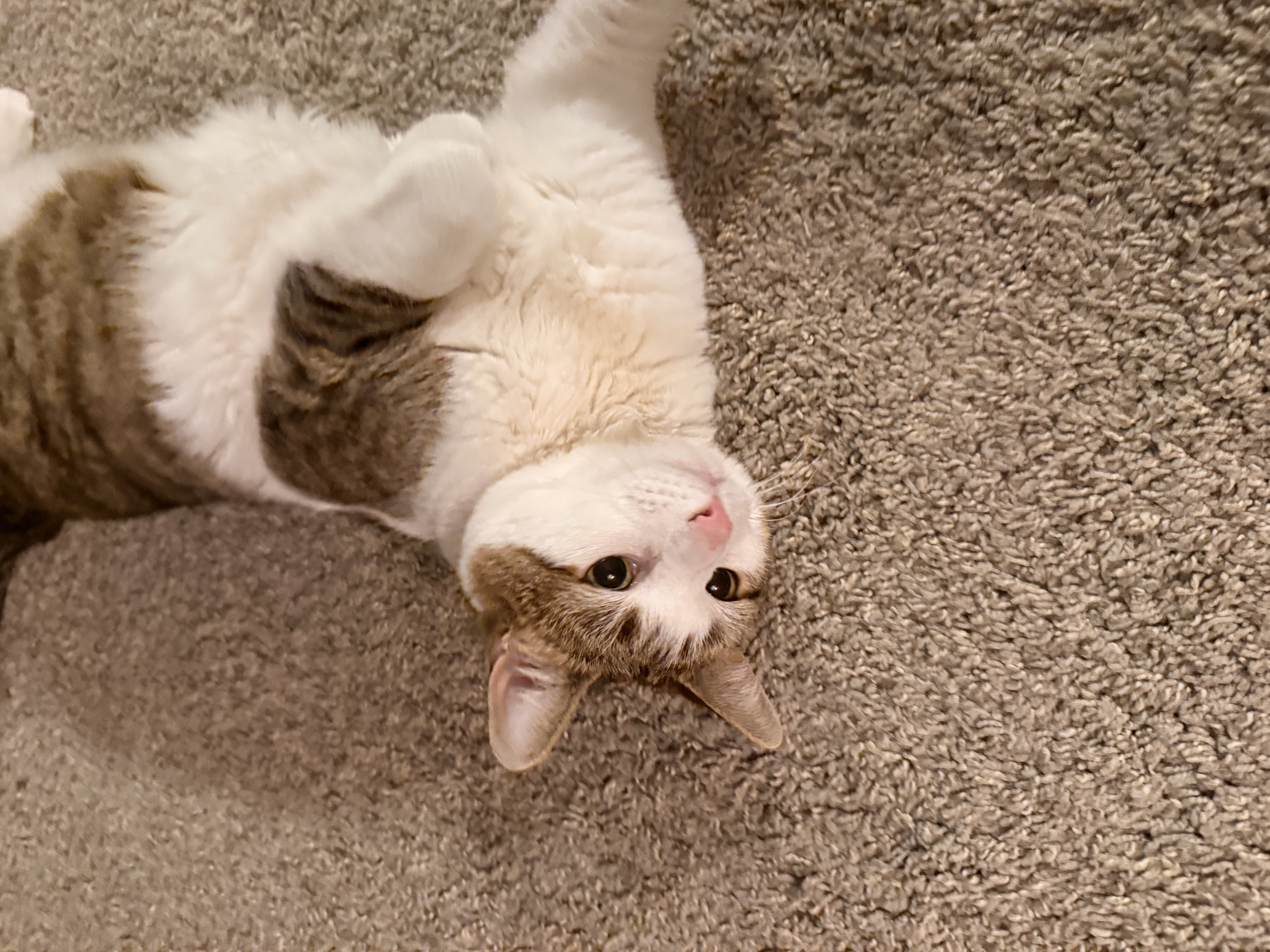 ... more ...These fun furry kitties woke up feeling refreshed and hungry! So after feeding in the nice trio style we headed to the living room for some kitty love and laser play. Mr. Floppy/ Mr. Kitty wasn’t too worried about anything…