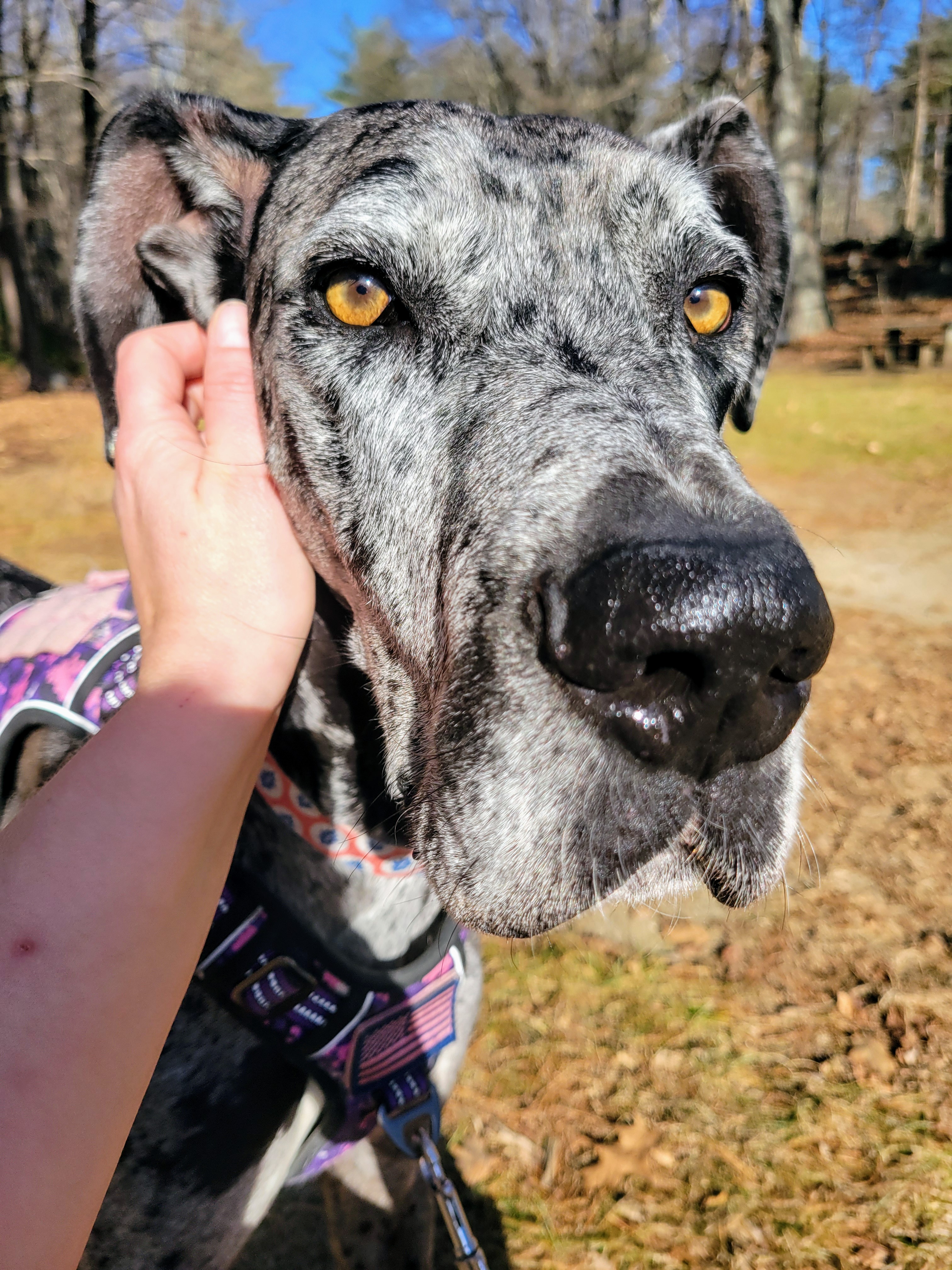 What a beautiful afternoon to be at the park ! Maxwell sniffed his way around the trail ,twisting & turning to ensure he didn’t miss a spot . I ran into a couple of friends and Maxwell enjoyed getting attention
