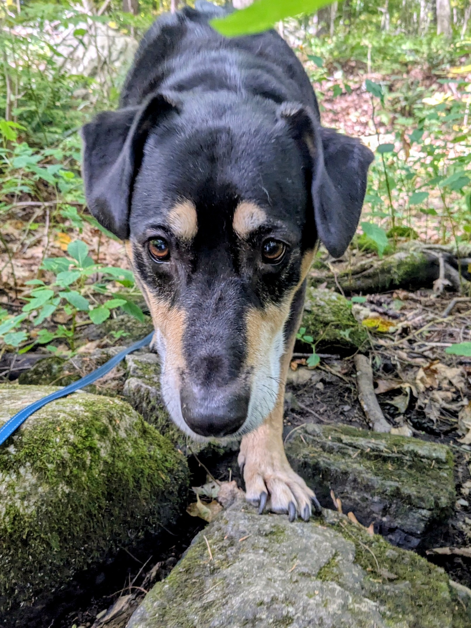 You’d think Apollo and I have been friends since middle school the way he greeted me. It took no time to get him leashed and we headed right down to the trail. I let him pick the direction and he