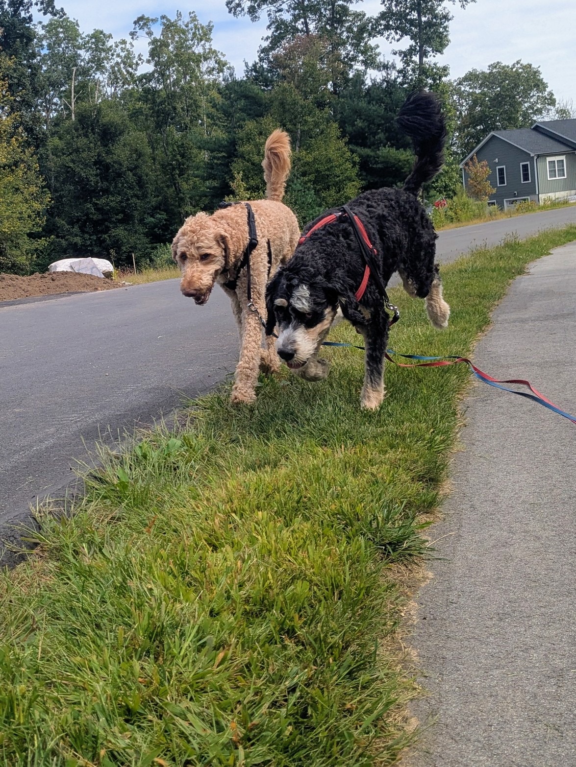 The kids both welcomed me with hardly any trepidation, excited for the walk. There was nothing to clean up 😁 so we headed right out. They were pretty good about not grazing, so I let them stop and sniff the