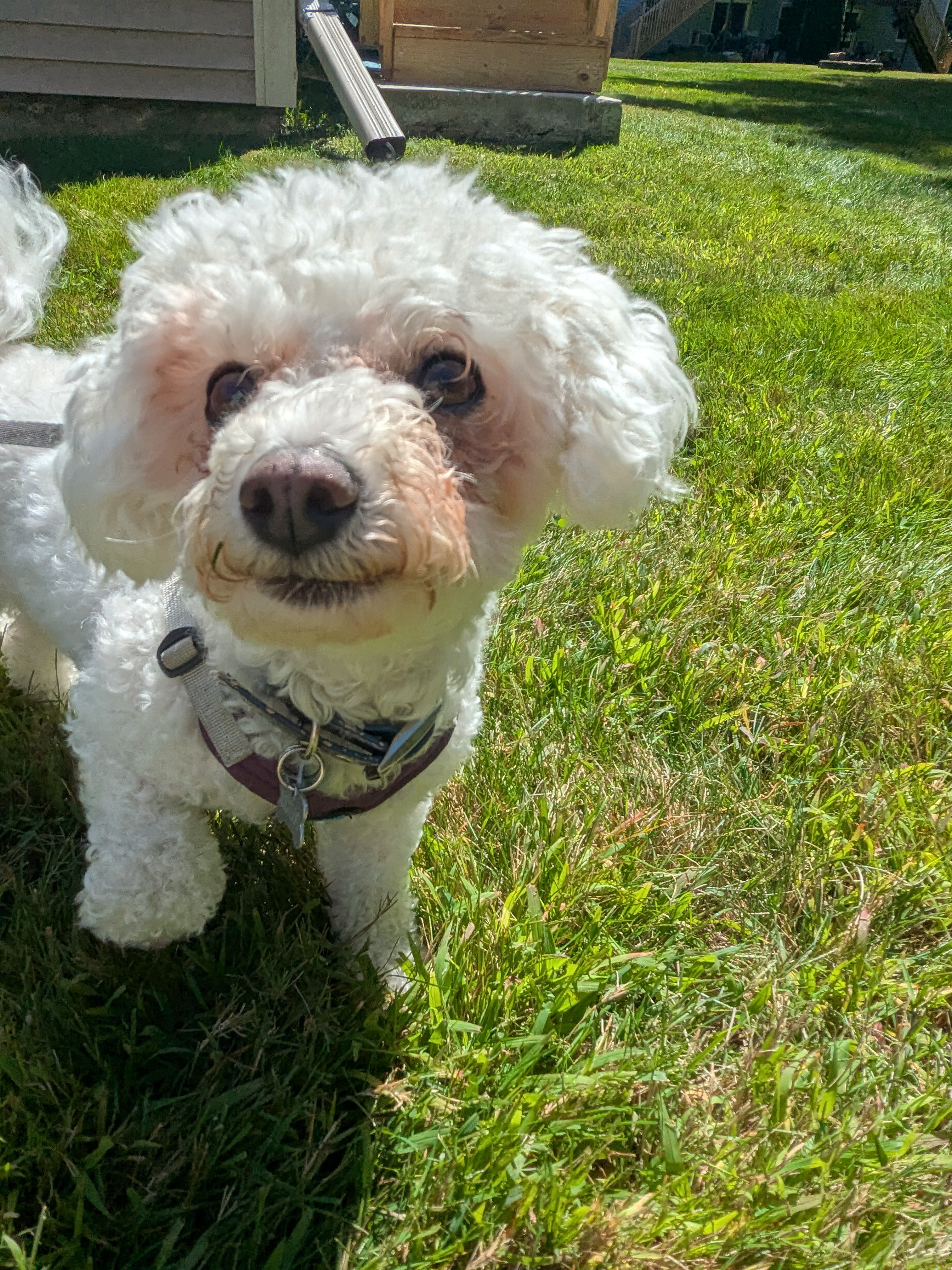 Today Mylo and I to my happiest suprise we’re matching! Red plaid for the win. Mylo was super excited waiting on his porch very patiently. The second we got off the porch he had the zoomies and needed to run.