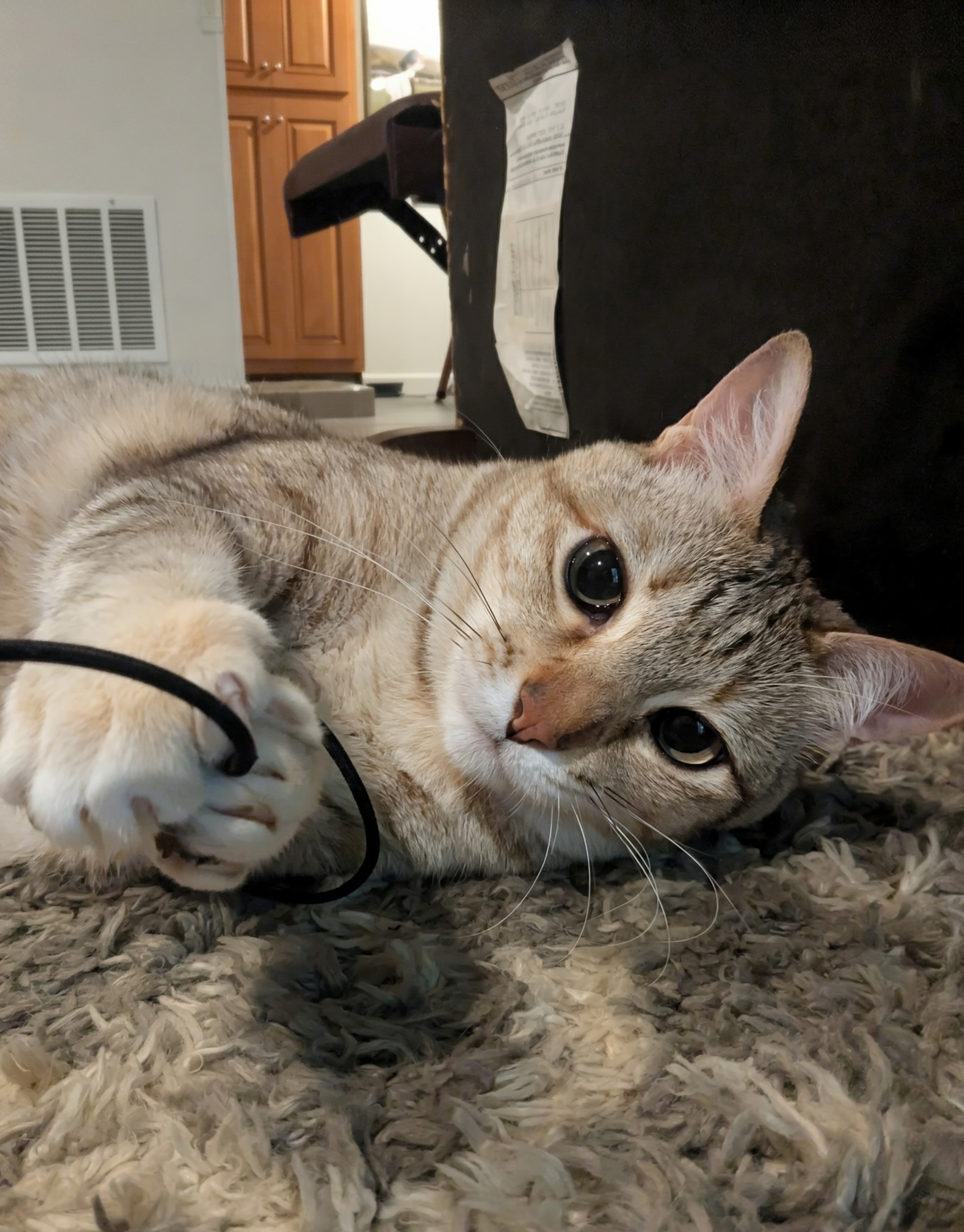 With a name like Friday, today is her day!!! She greeted me at the door with the loudest purrs and immediately wanted pets and of course dinner! She was very helpful and supervised me preparing dinner and even while I