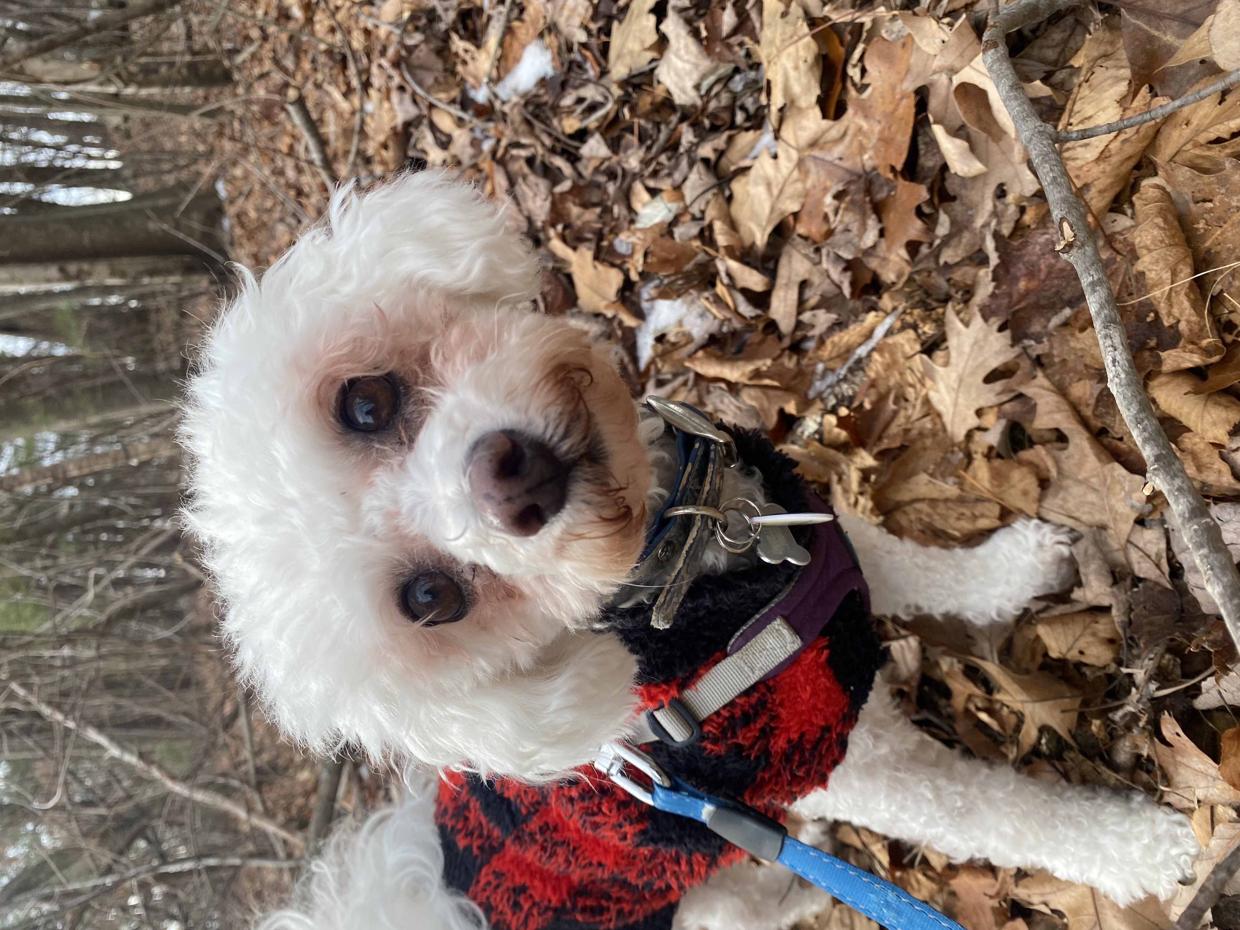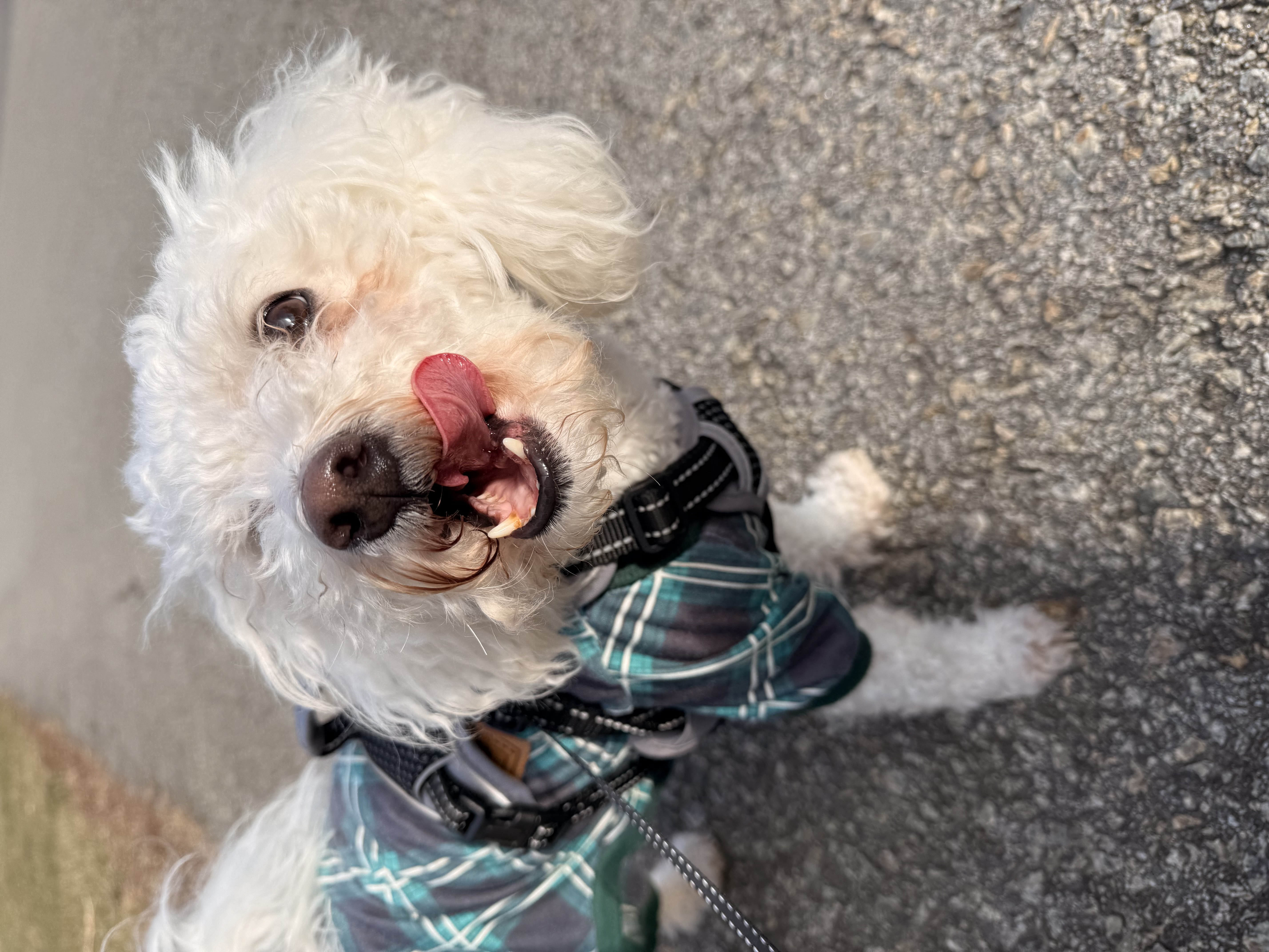 Henry & Krypto got to meet new friend Amber today! 🤗 They put on their matching red jackets (because obviously they’re style icons) and headed out for a chilly walk. The air was cold, but they were ready—two fluffy Cotons