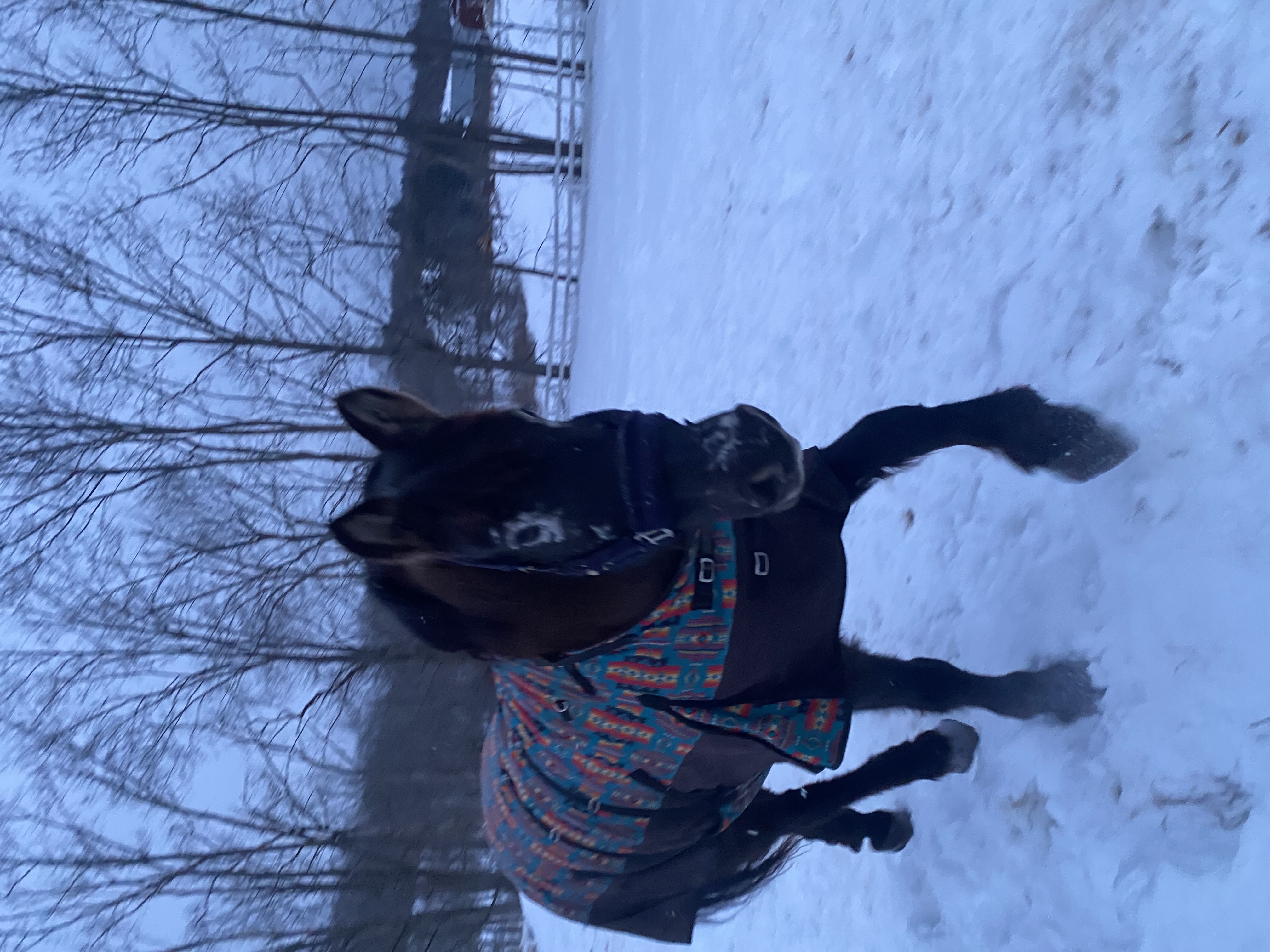 Beautiful flurries of snow on the farm this morning!! Astrid is giving me a run for my money haha 🤣 I secretly love it, she likes to go into her grain when I let her out she knows I’m a