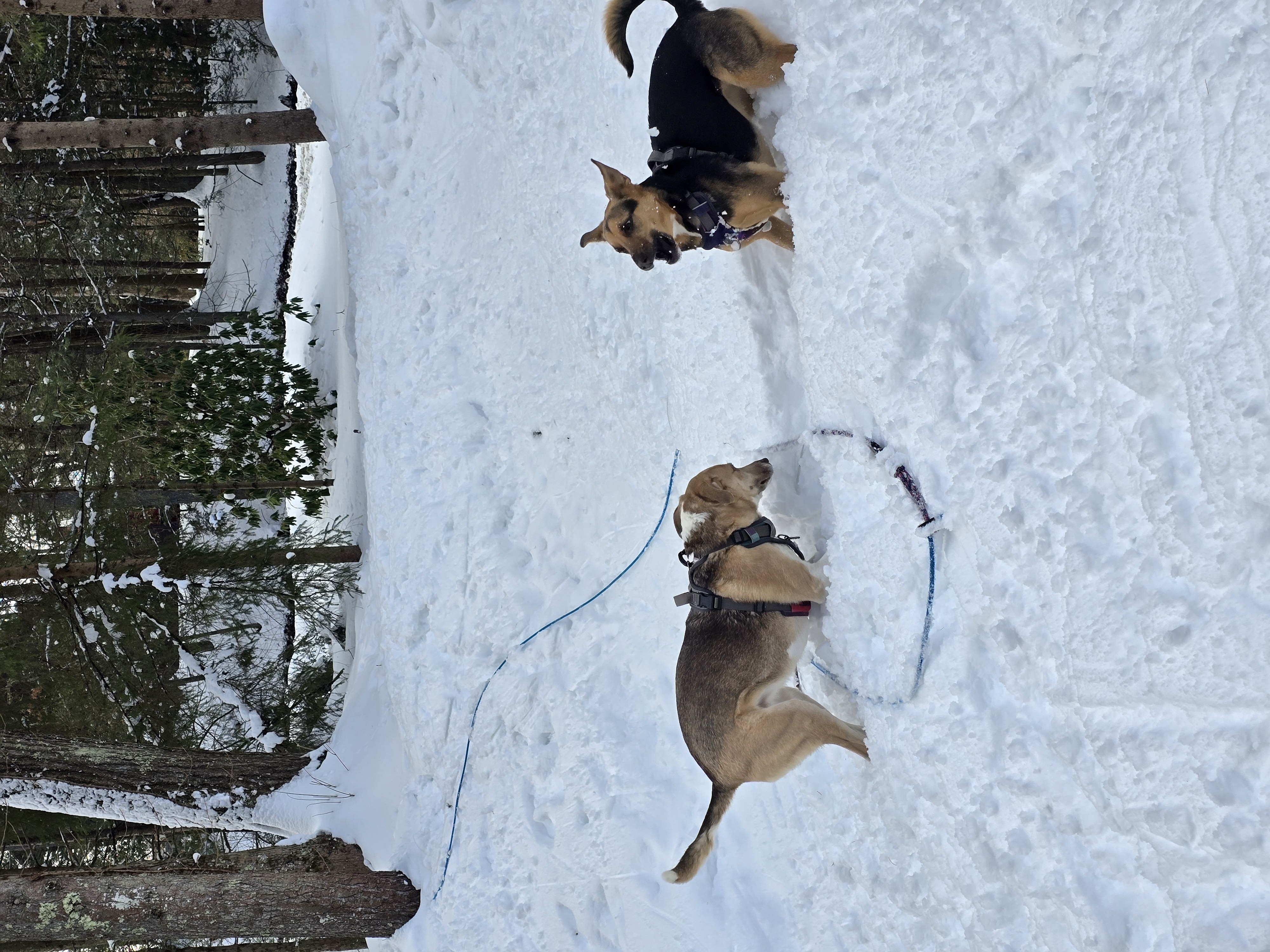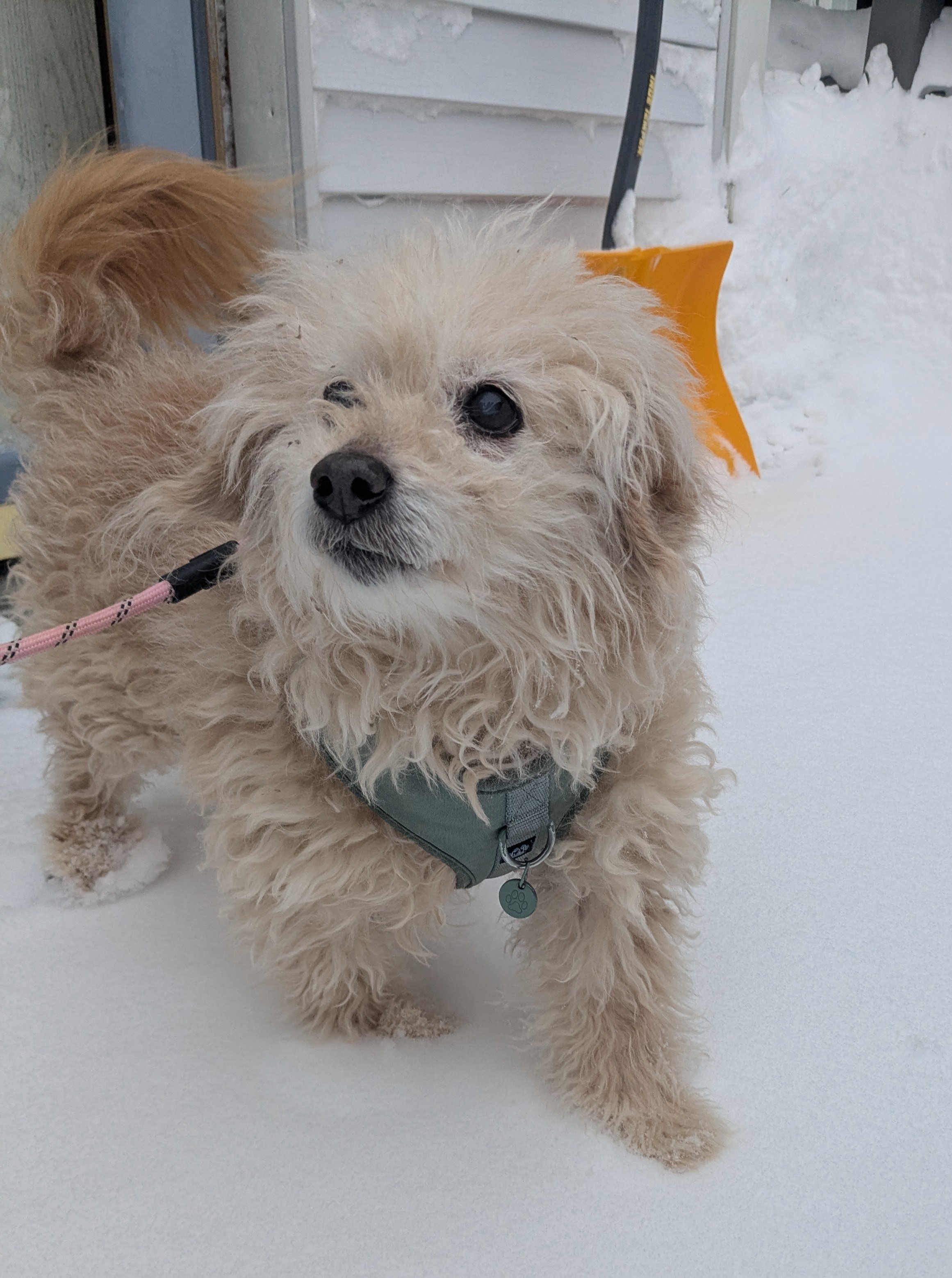 Jasper and Monty were excited to venture out in the freshly fallen snow from this morning. Jasper, because he likes to make snow art in the snow piles when he does his “business”😊. But it’s a quick trip and back
