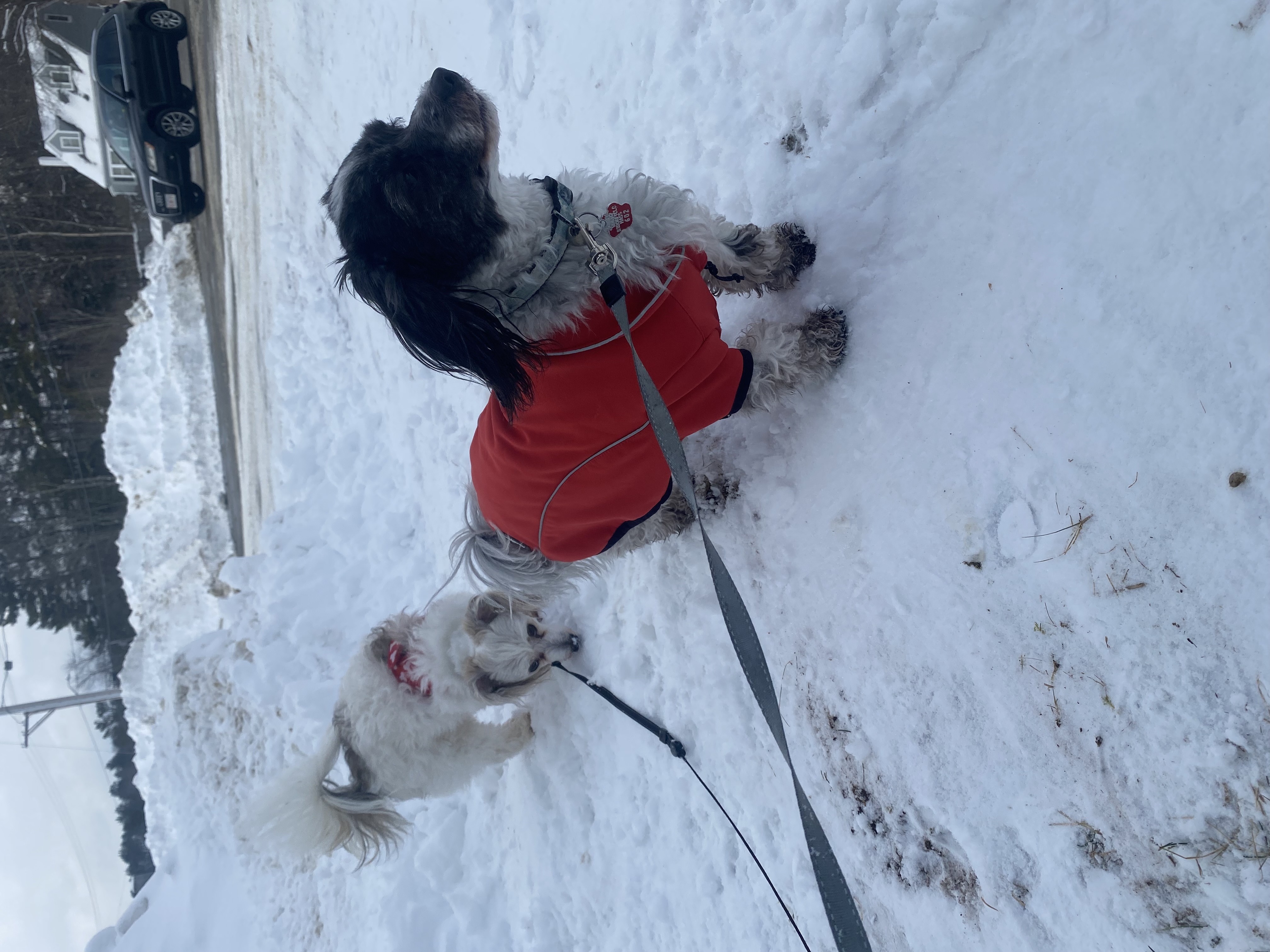 💕I’m convinced Bagel sees a “Welcome” sign with her name on every driveway 😆🐾 Our mischievous little lady soaked up the sunshine, enjoyed the warmer temps, swam through the fluffy snow, and happily collected plenty of treats along the way.☀️