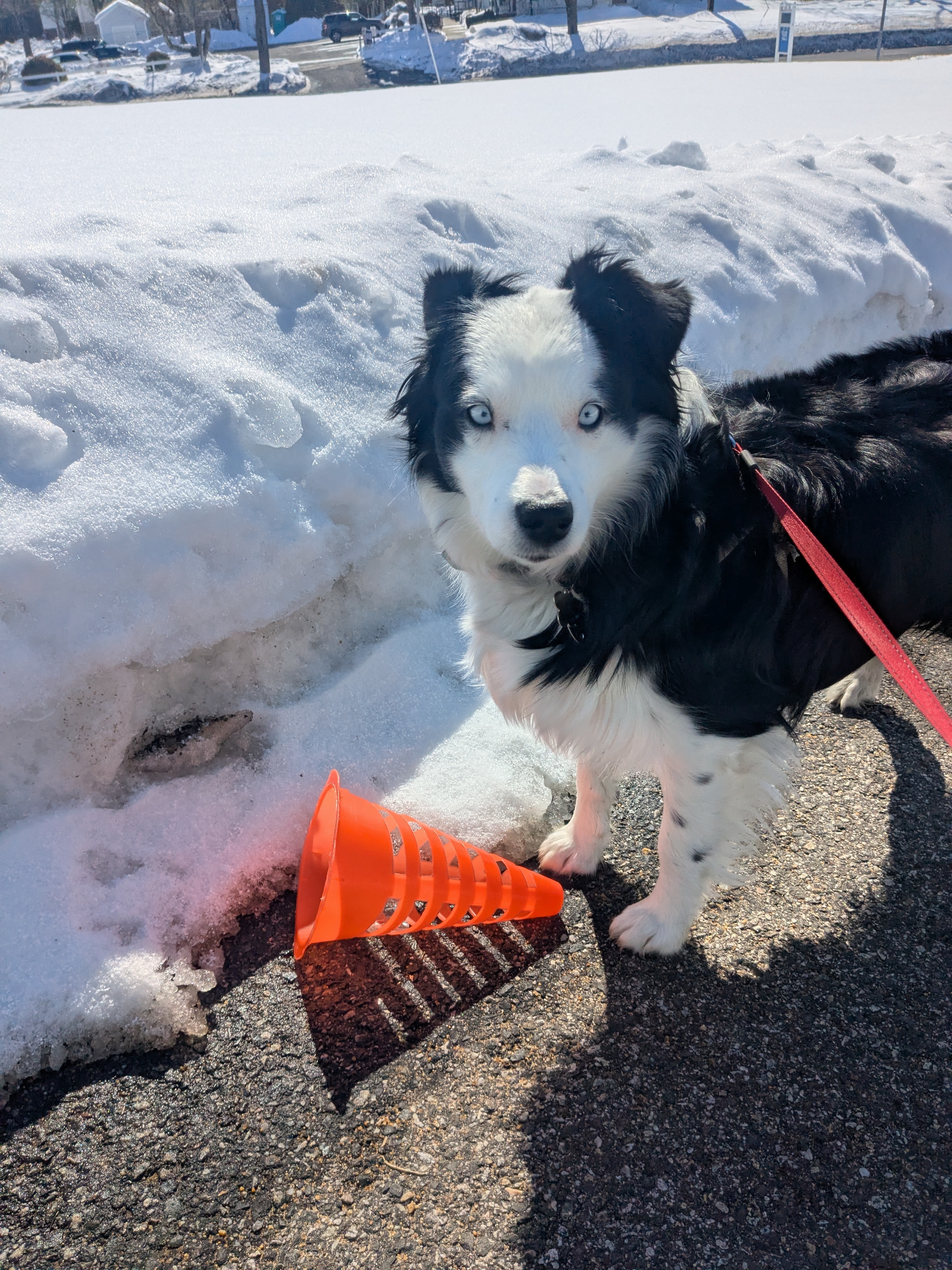 Today on our adventure Sophie and I stumbled upon and mysterious orange thingy in the distance! She slowly approached it and I told it was a safety cone gone rouge! She looked at me and asked “A snow cone?” With