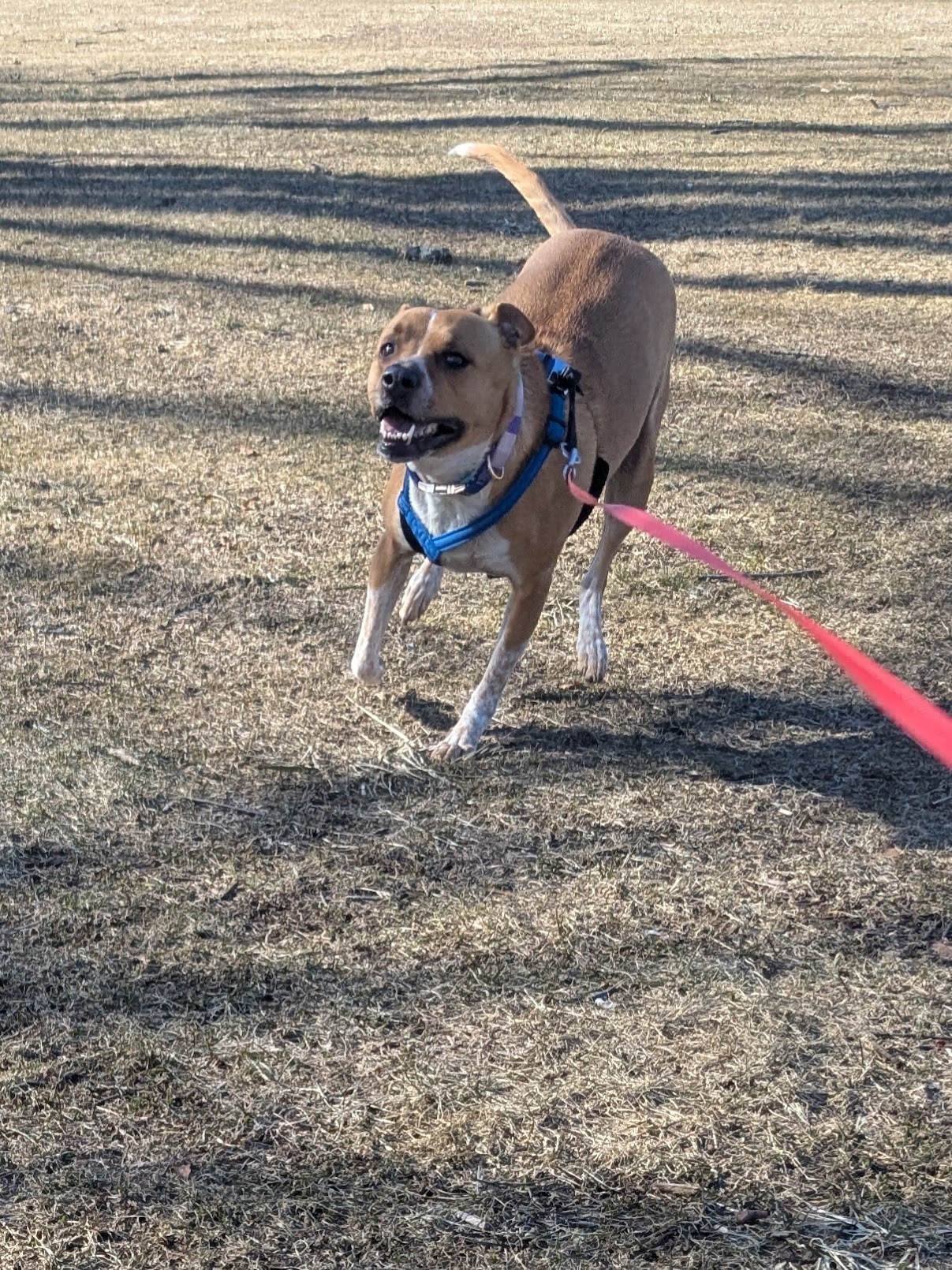 Pickles wasted no time in getting down to fun with us today! We went for a walk to Hobbs Brook, played in the Common, and snuggled on the couch. She watched cats and cops out the window, and ate dinner