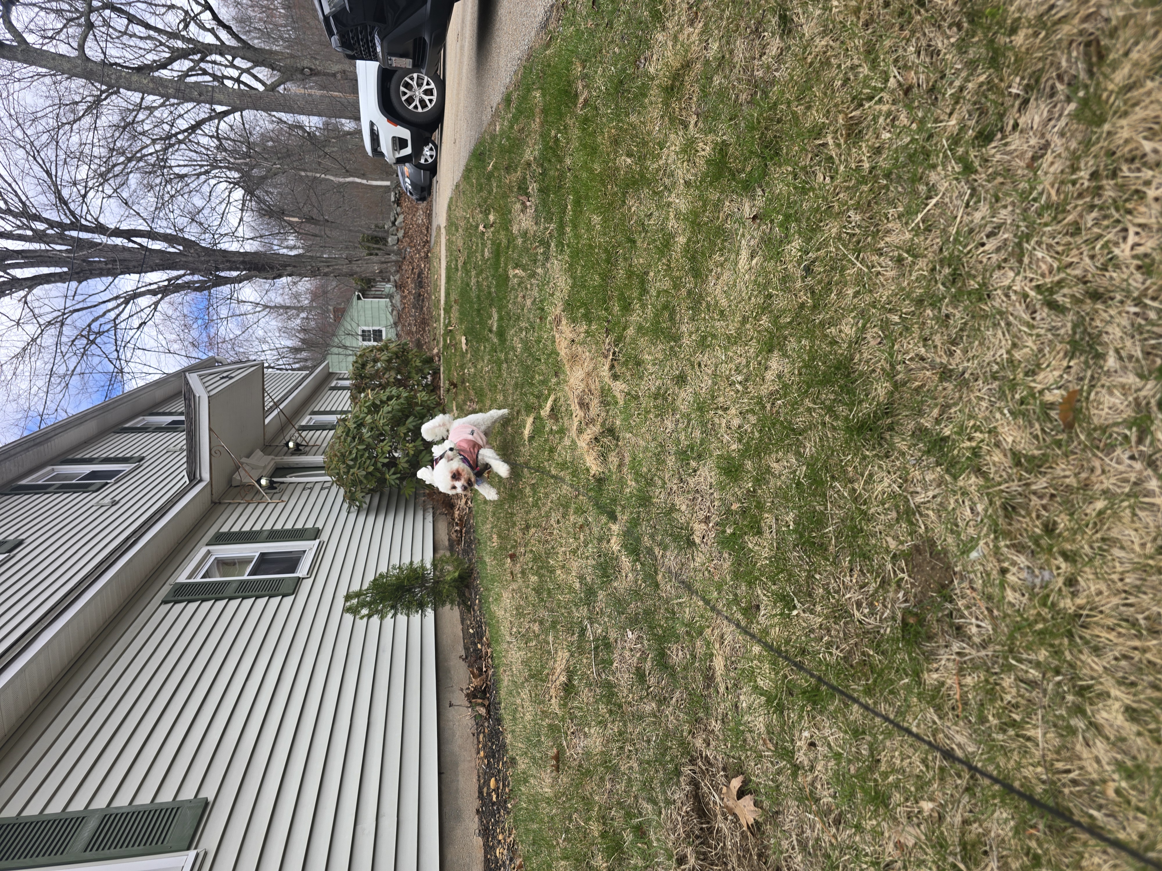 Cool breeze, blue skies, and one determined little explorer. Mylo had places to be, scents to investigate, and absolutely no interest in heading back inside. 🐶💨 From supervising the big construction job 🏗️👀 to strutting the neighborhood, he was on