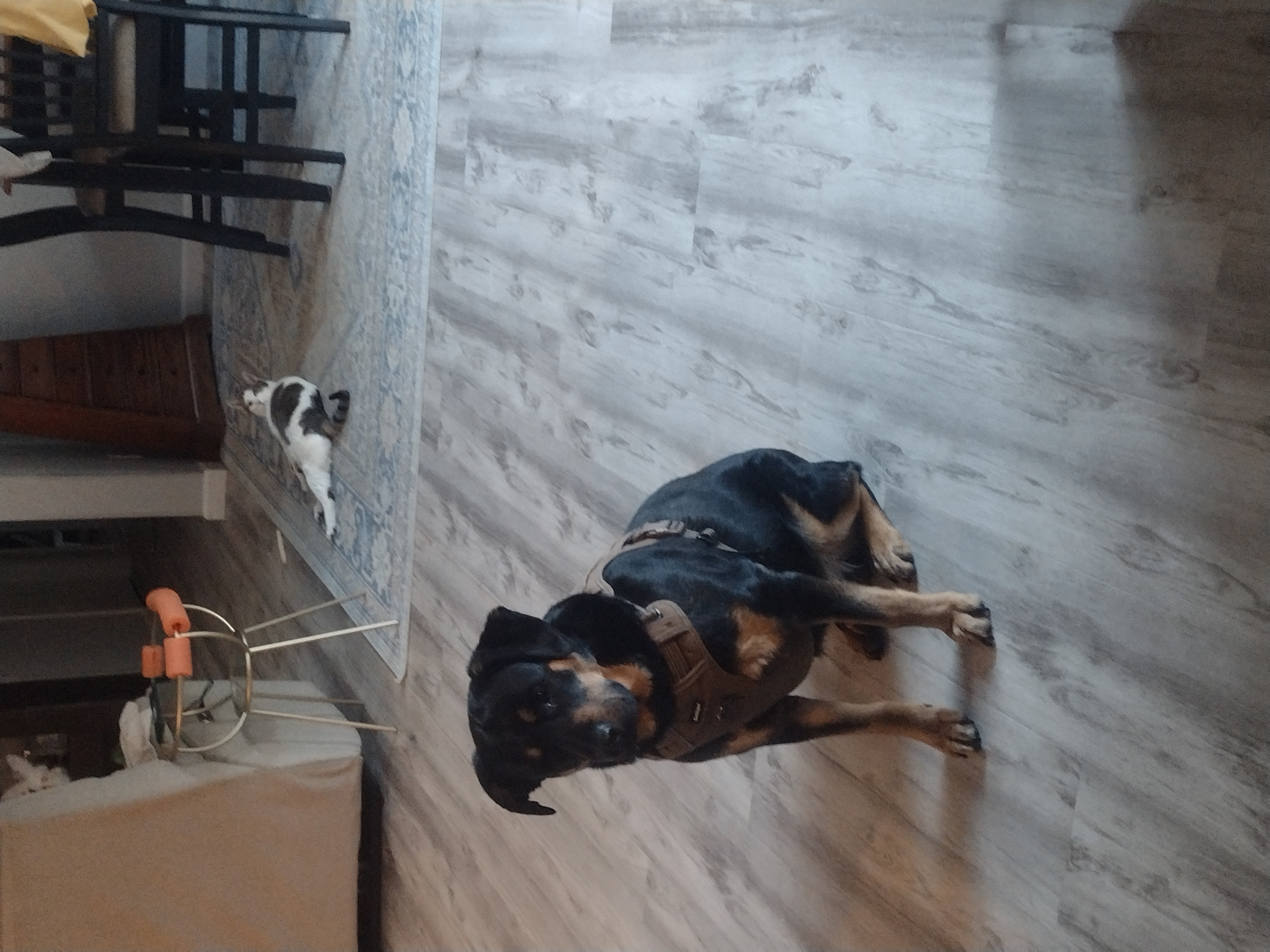 Buddy was at the door ready to go out to play and run around the yard. Lots of great bird sounds and woodpeckers to greet him this morning. He sniffed out his usual places and had fun running around. Dexter