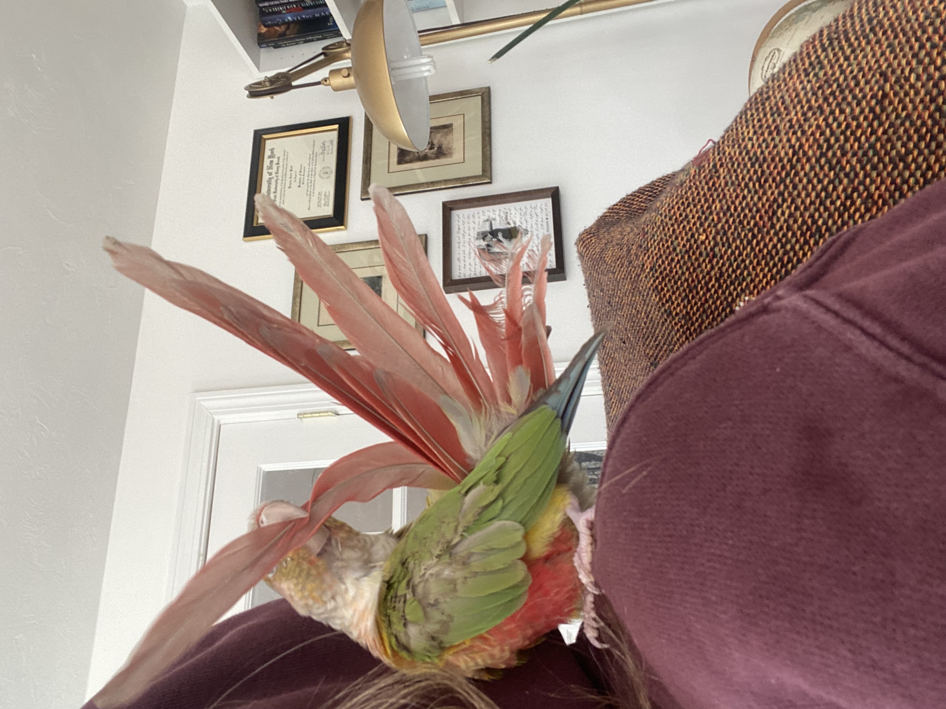 Today When I took Kari out I said “Kari stretch your wings fly fly fly!!” And she said “no thanks I’d rather clean clean clean my wings” I said okay okay that’s fine do you girl!!! And that she did!!