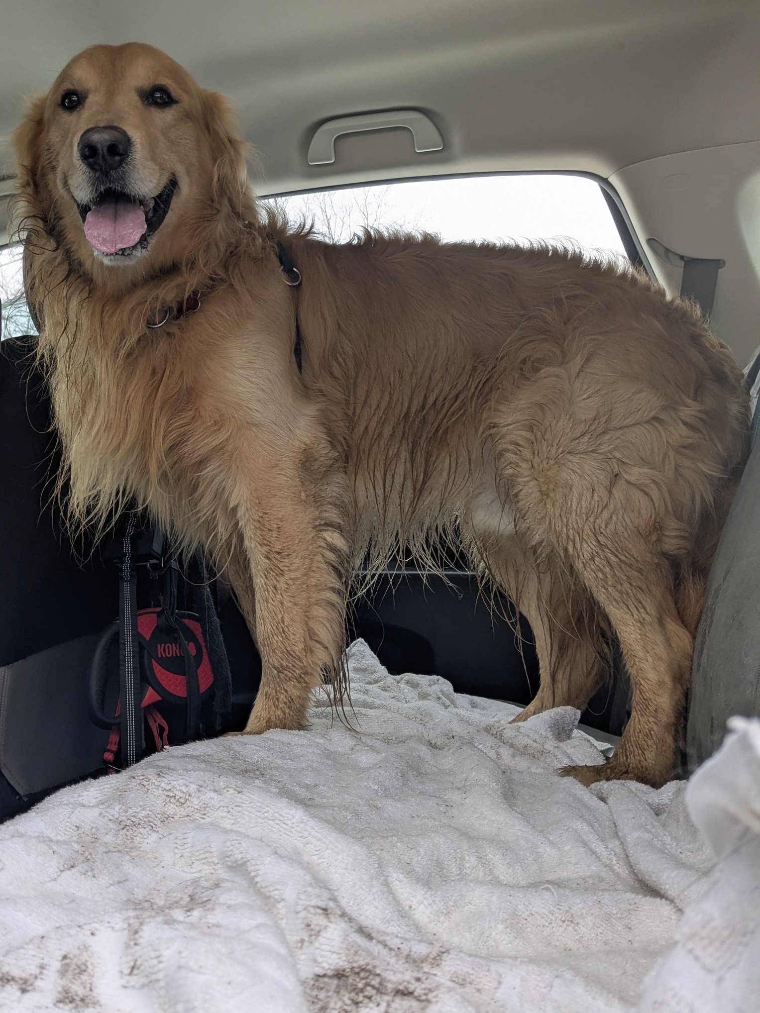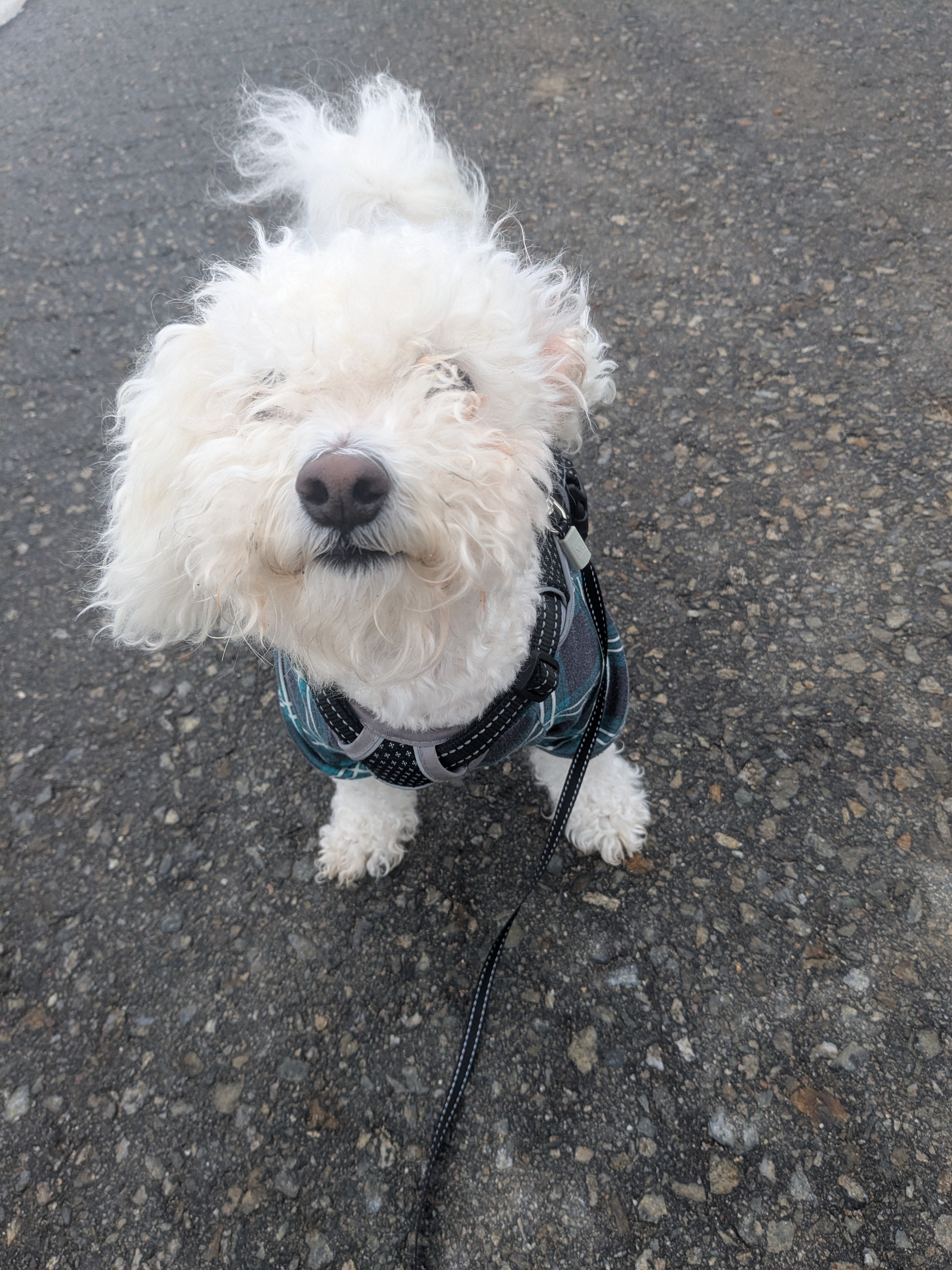 Cold wet yuck outside yet Millie was as happy as ever. She didn’t mind the mud, didn’t mind sticking to a pavement only walk (except when cars drove by – then she’d go up on a bank to wait and