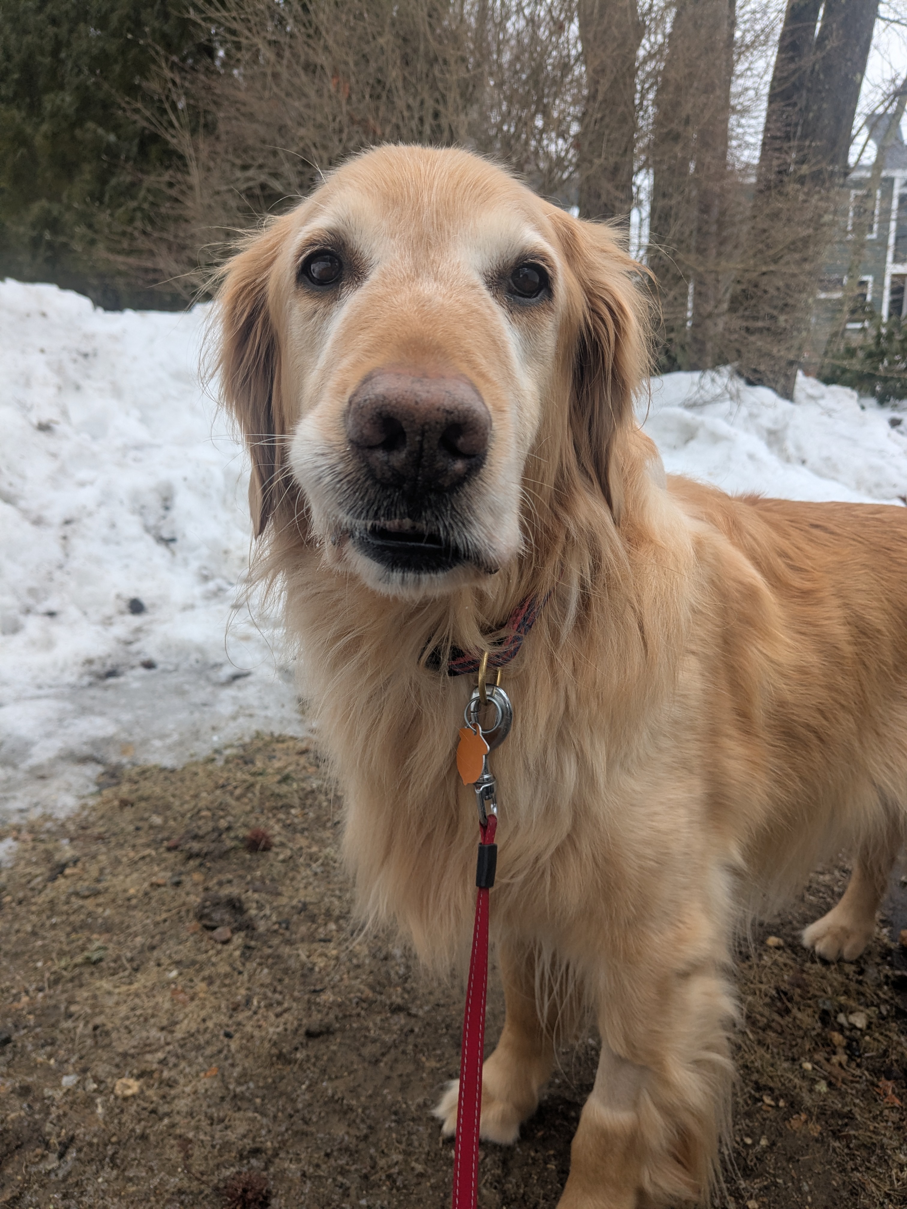 We went all over looking for a place to walk. The Commons were covered in snow, the sidewalks slippery and narrow , and Maxwell would have traded his whole kingdom for a few strips of non-muddy grass to sniff and