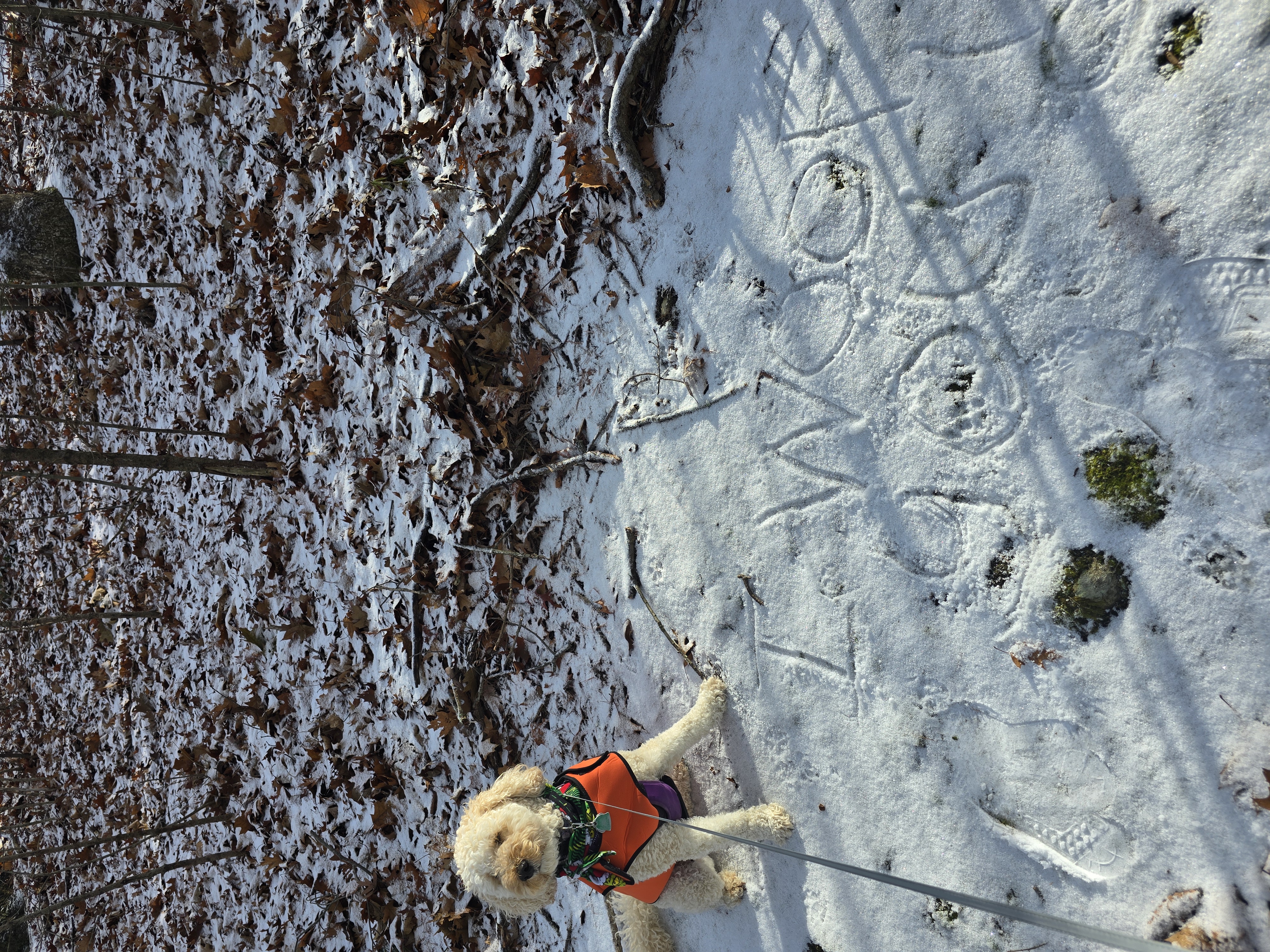 Millie climbed her favorite rock like a frosty queen, and cutely captured every stick friend Amber happened to find. 😁 Treats & Zoomies then back to her cozy home 🏡 💖