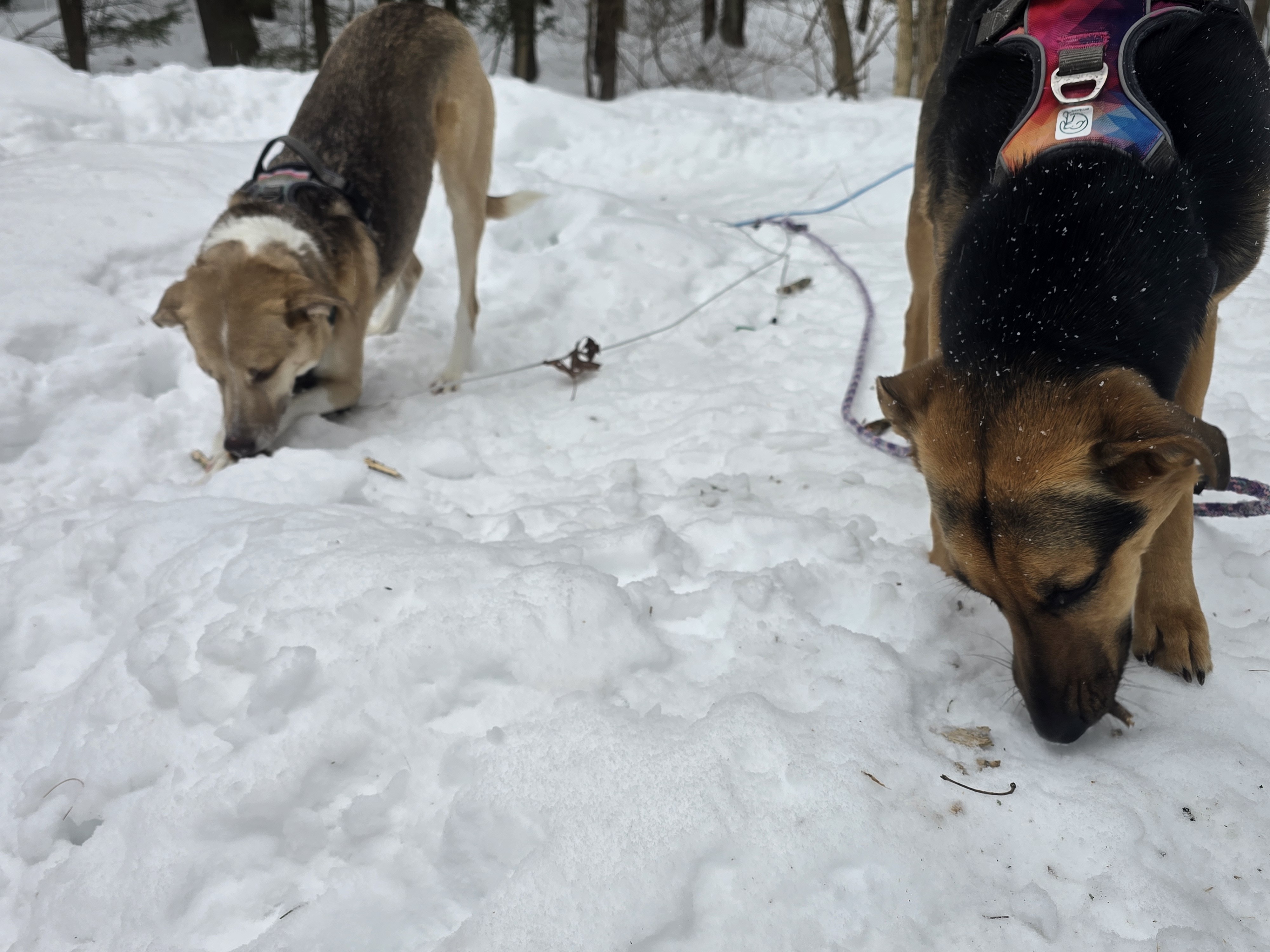🐶💕🐶 Fawn and Polly hit the wintry mix like seasoned snow pros ❄️🐾 Slushy flakes, soggy paws, and zero complaints — just full-speed zoomies and the most satisfying stick crunching soundtrack. A little cold, a little messy, and a whole lot of happy. Winter adventures look good on these two ❤️🌨