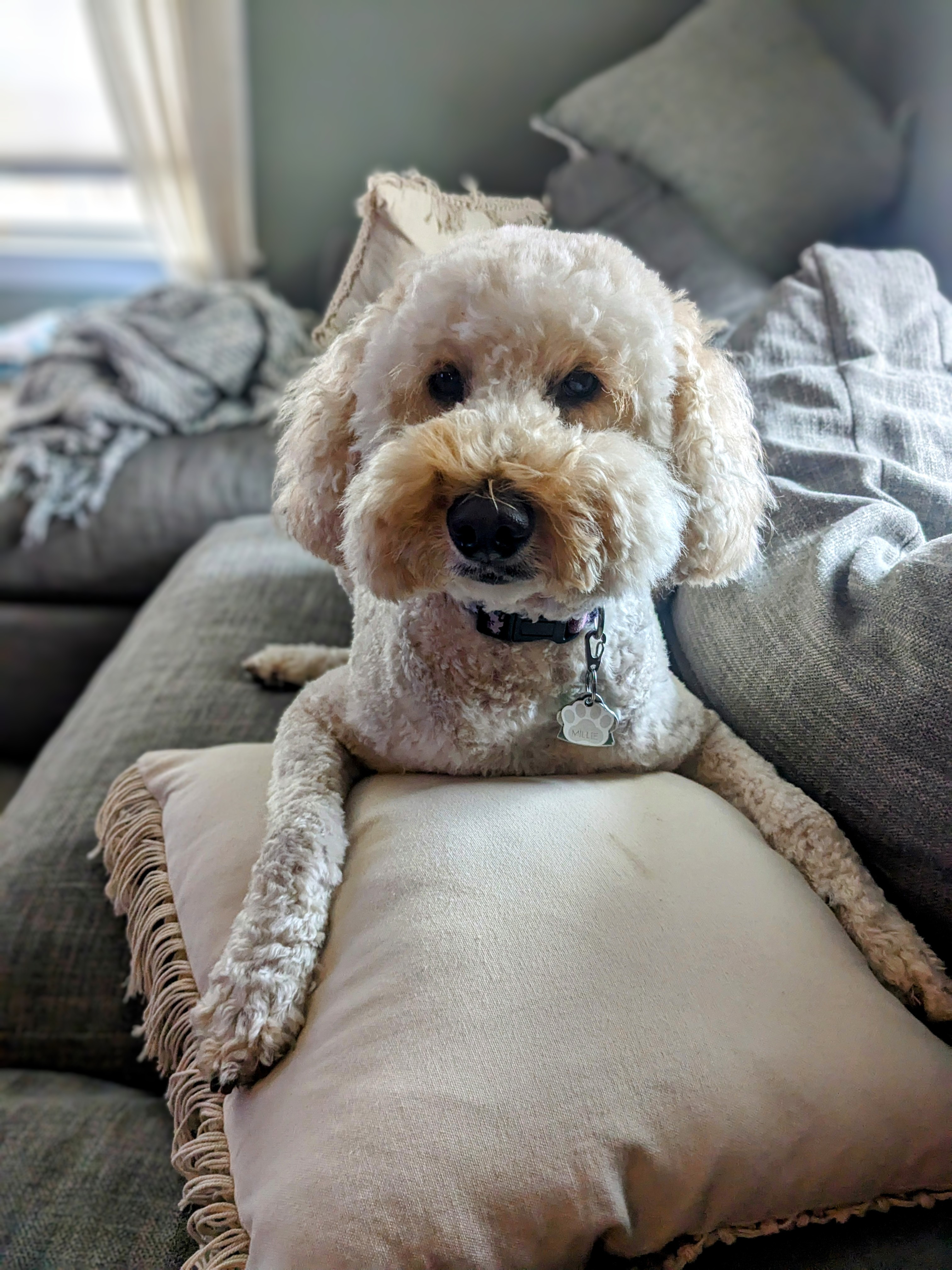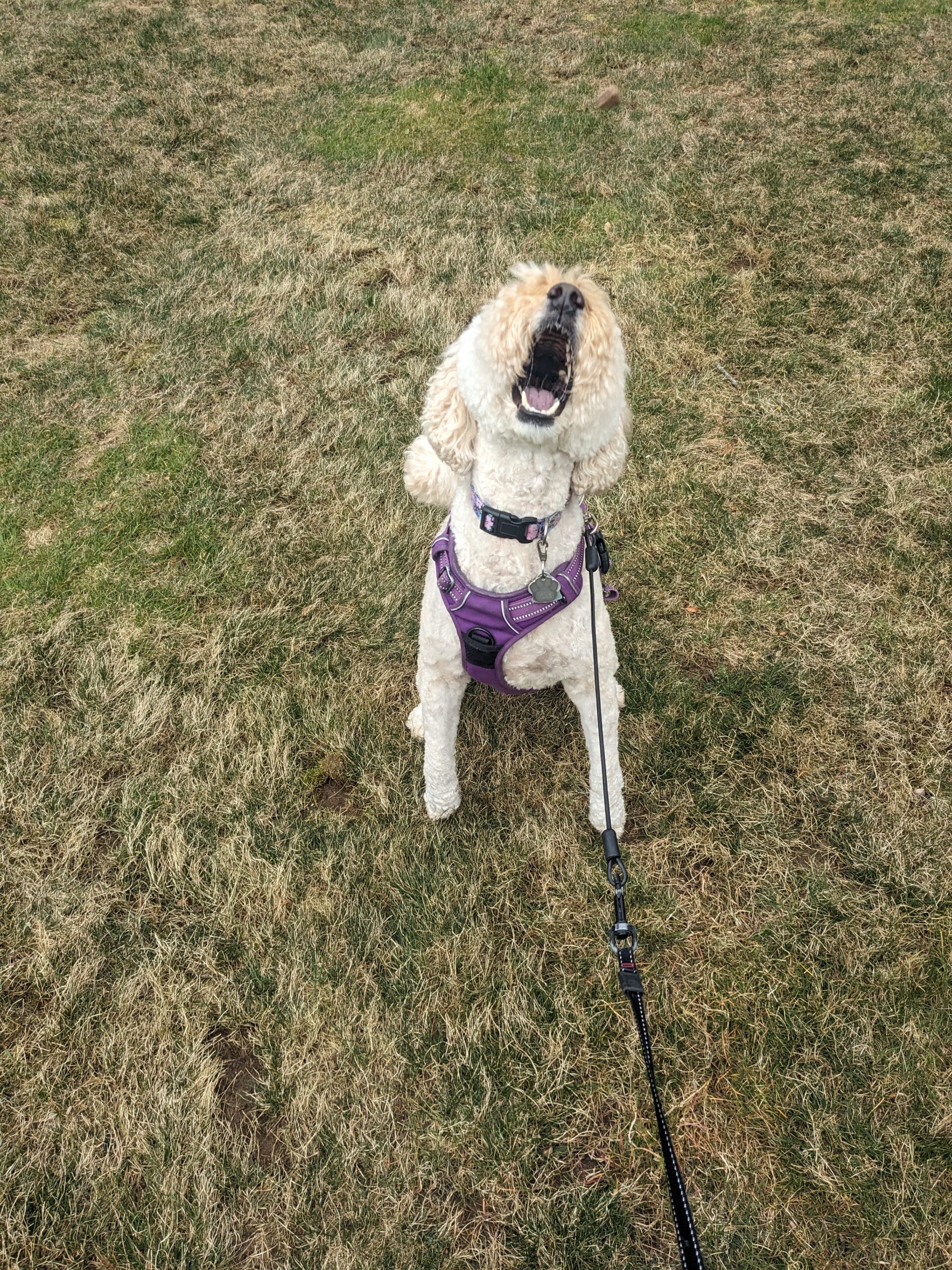Millie was in such a a playful mood today! She also looked adorable all freshly groomed!🥰 On our walk we played tag and keep away! Then we said Hi to her new friend Bella as they passed by. Millie got so excited after seeing her that she had a case of the sillies complete with zoomies! She is one fast pup! I think she was showing off for the landscapers in her yard. They all got a kick out of her being silly! Oh such a silly pup she is! She keeps me young!🐾🥰🤪