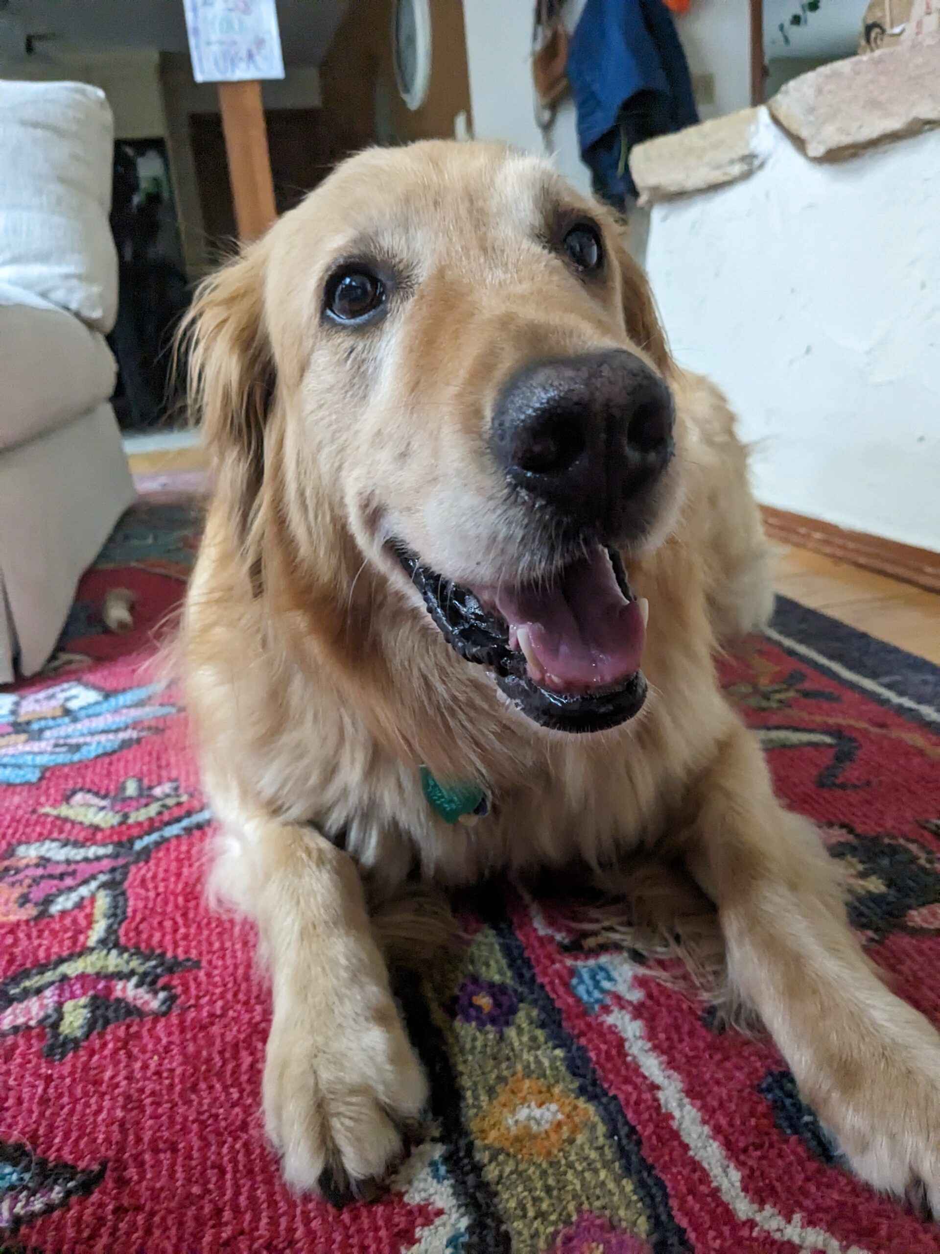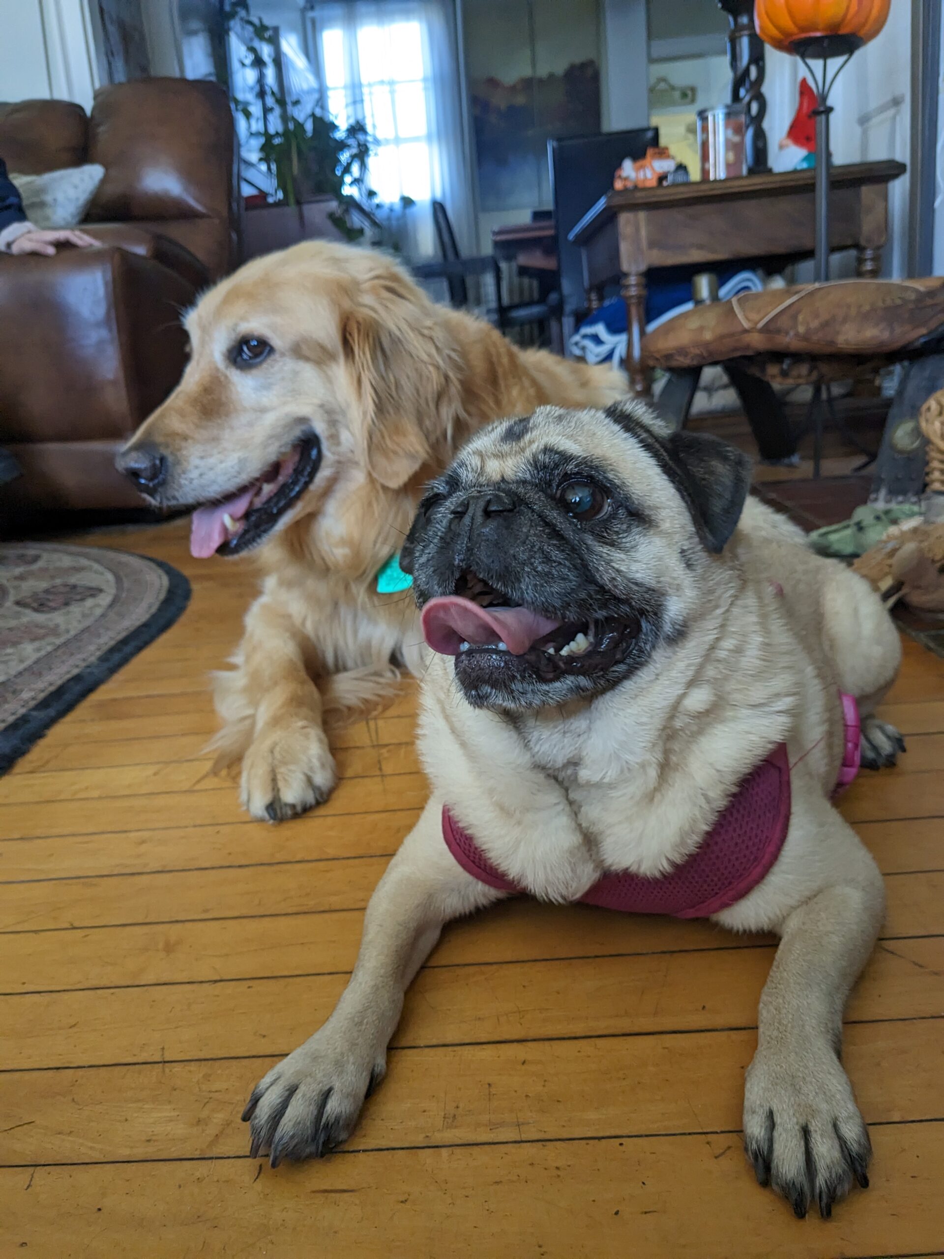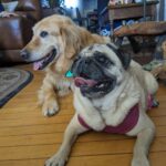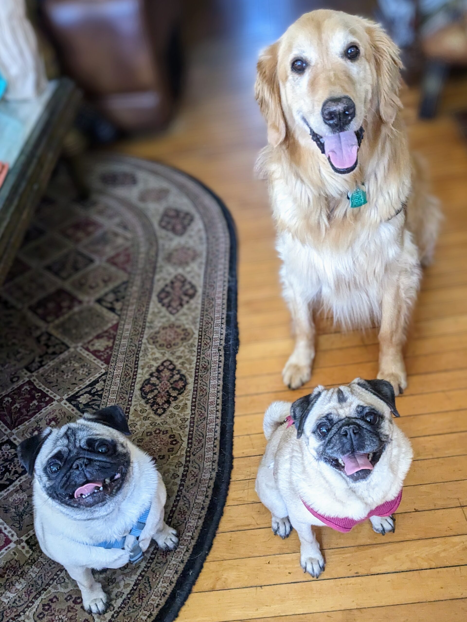 Julian was an amazing companion for me this weekend. He was feeling blue being left behind but once he saw me he knew he wouldn’t be bored. Saturday was rainy, so we hunkered down inside, playing with his toys, snuggling on the futon to watch a movie, and taking naps. By Sunday the weather had cleared and an early morning walk invigorated us. We headed out to run some errands. Julian didn’t care where; the car is his happy place. Then we went to my place to meet Abigail and Sophie who instantly fell in love with Mr J. I took all 3 to the farmer’s market, where Julian was very calm and mellow, politely saying hello to every person and dog, even as the pugs circled his feet and vied for his attention. I thought he’d be exhausted, but once we were ready to head out he wanted to go for a walk – just us – and we did. Back at his place we had lunch, took in the gorgeous scenery and he took a well deserved nap. After dinner we played indoor boy sports (nothing broken!) and watched stupid TV shows that made us laugh. Julian is such a snuggler I started to fall asleep on the couch and we finally went to bed. We’ve got big plans for our last day – a play date with Beau, and maybe a trip to Westville!