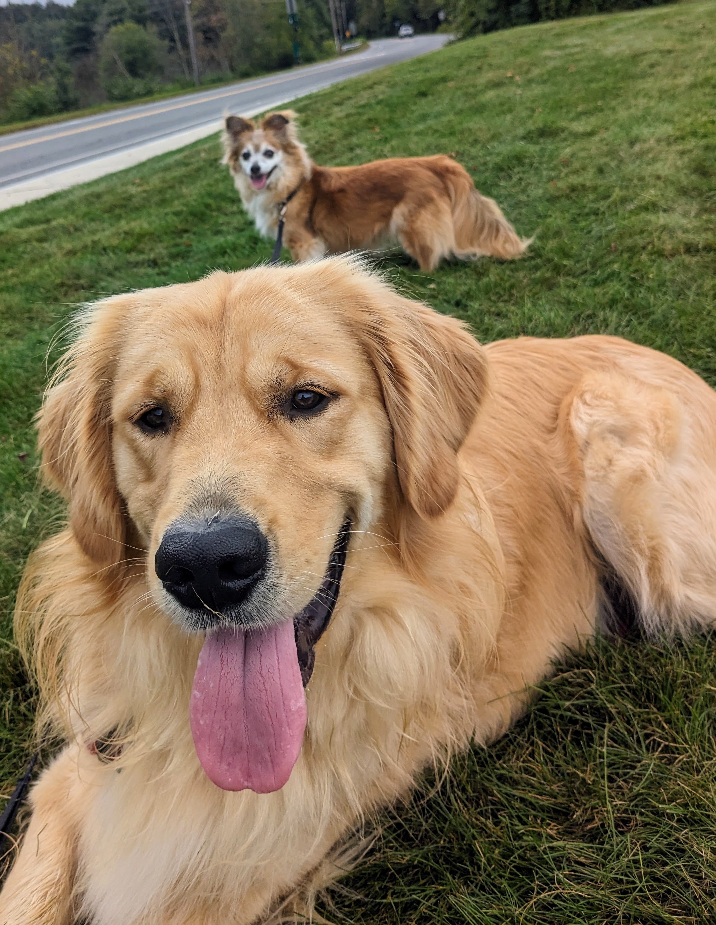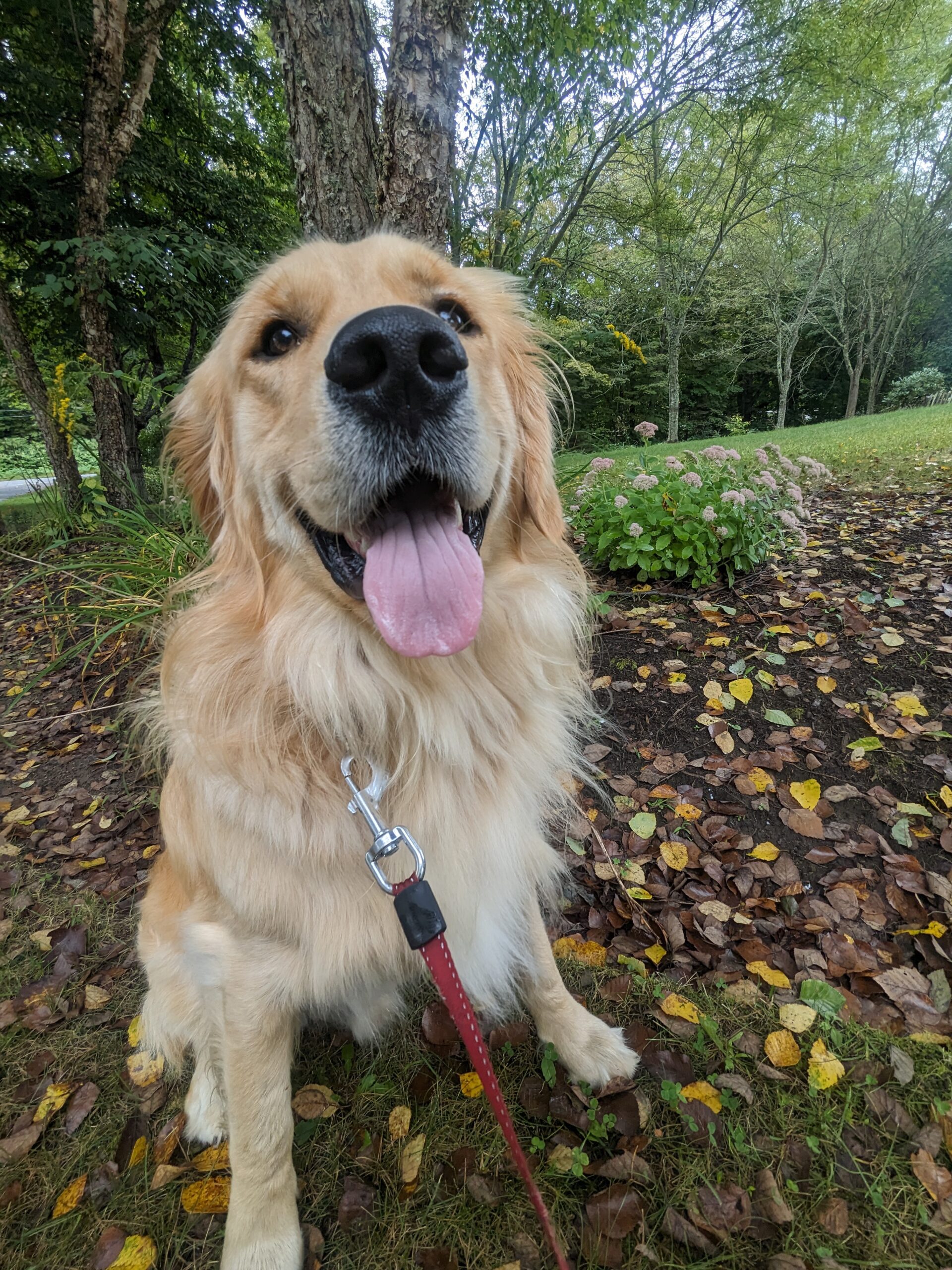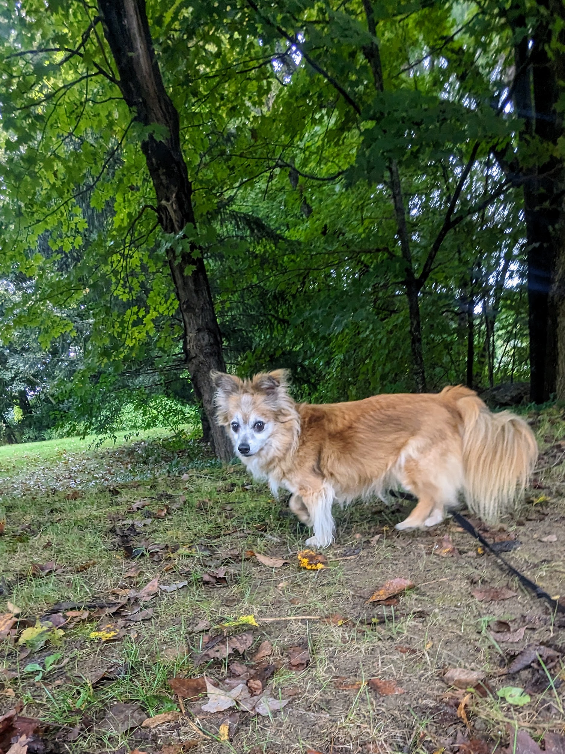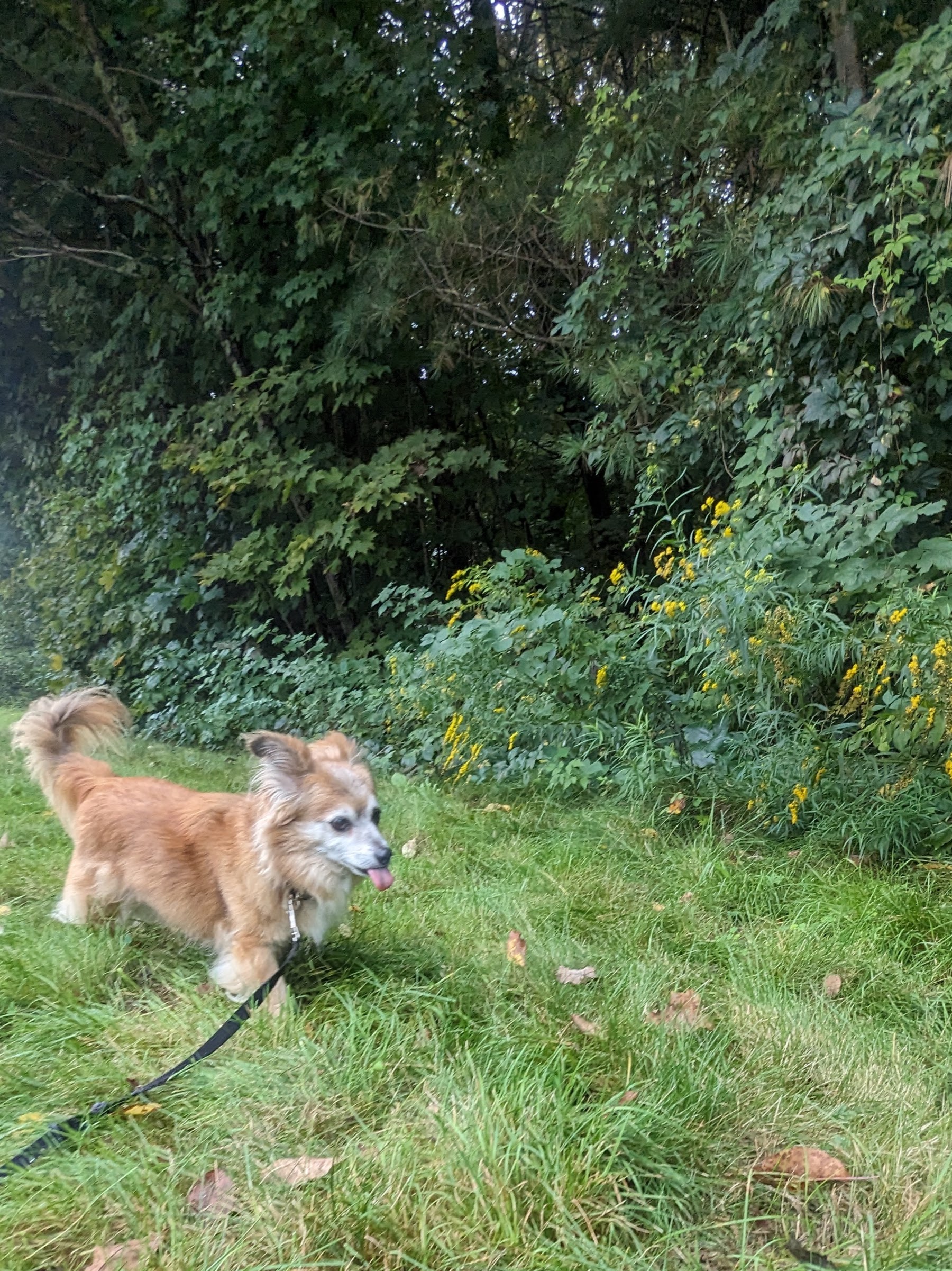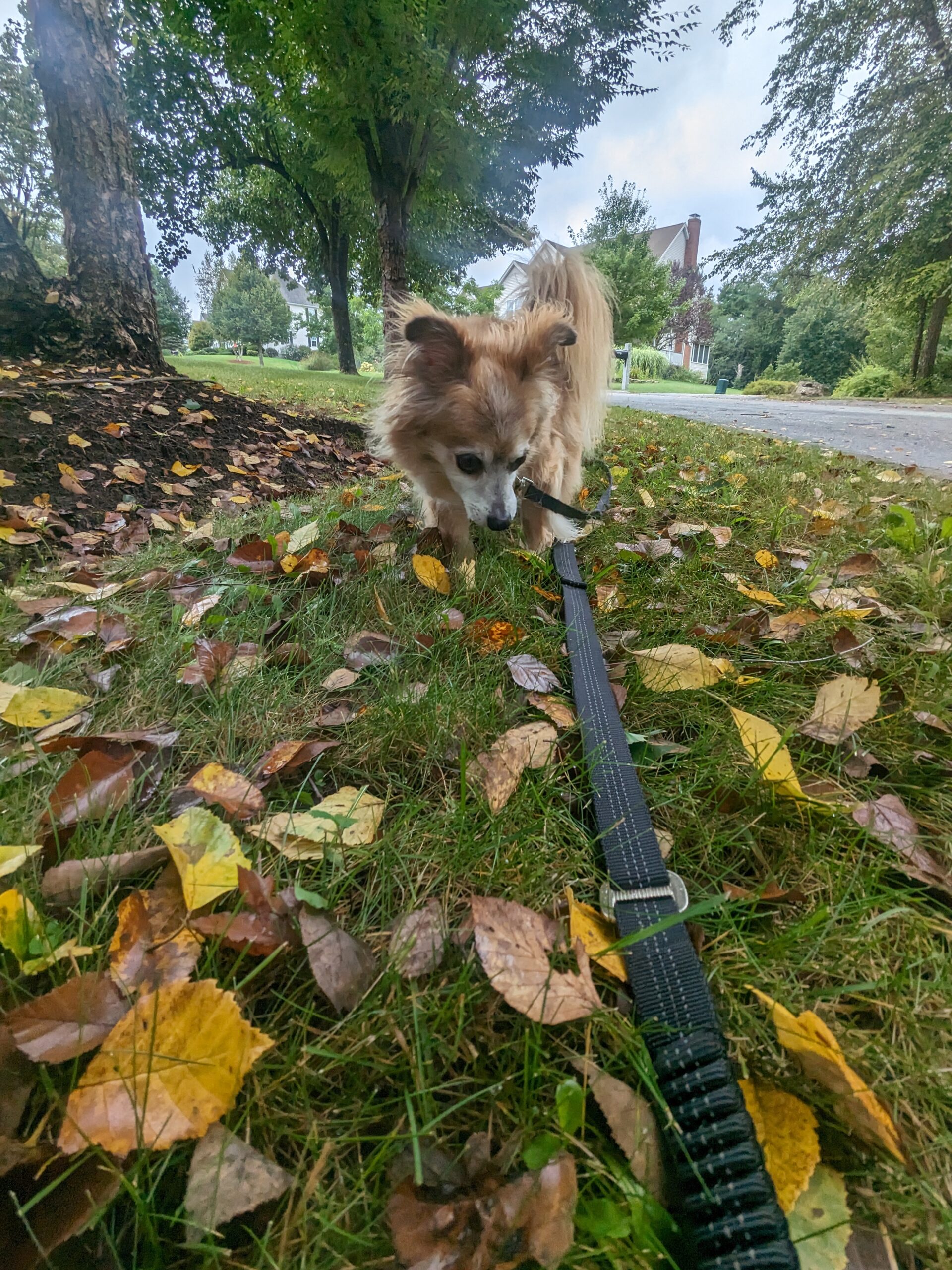 Beau was a delight as always – happy to please, full of puppy energy. Teddy was also… as delightful as always 😊 but I see through his growls and he knows that. He took a cookie from me, let me pet him, and jumped at the invitation to join us for a walk. While Beau knew what to expect and was ready to range, Teddy was a bit more cautious and wary. But there was no denying that he enjoyed sniffing and playing in the leaves as much as his little (big?) brother. The best moment when he jumped straight in the air when he spotted a fat worm in the grass. I suppose to him it was a snake! 🥰😂