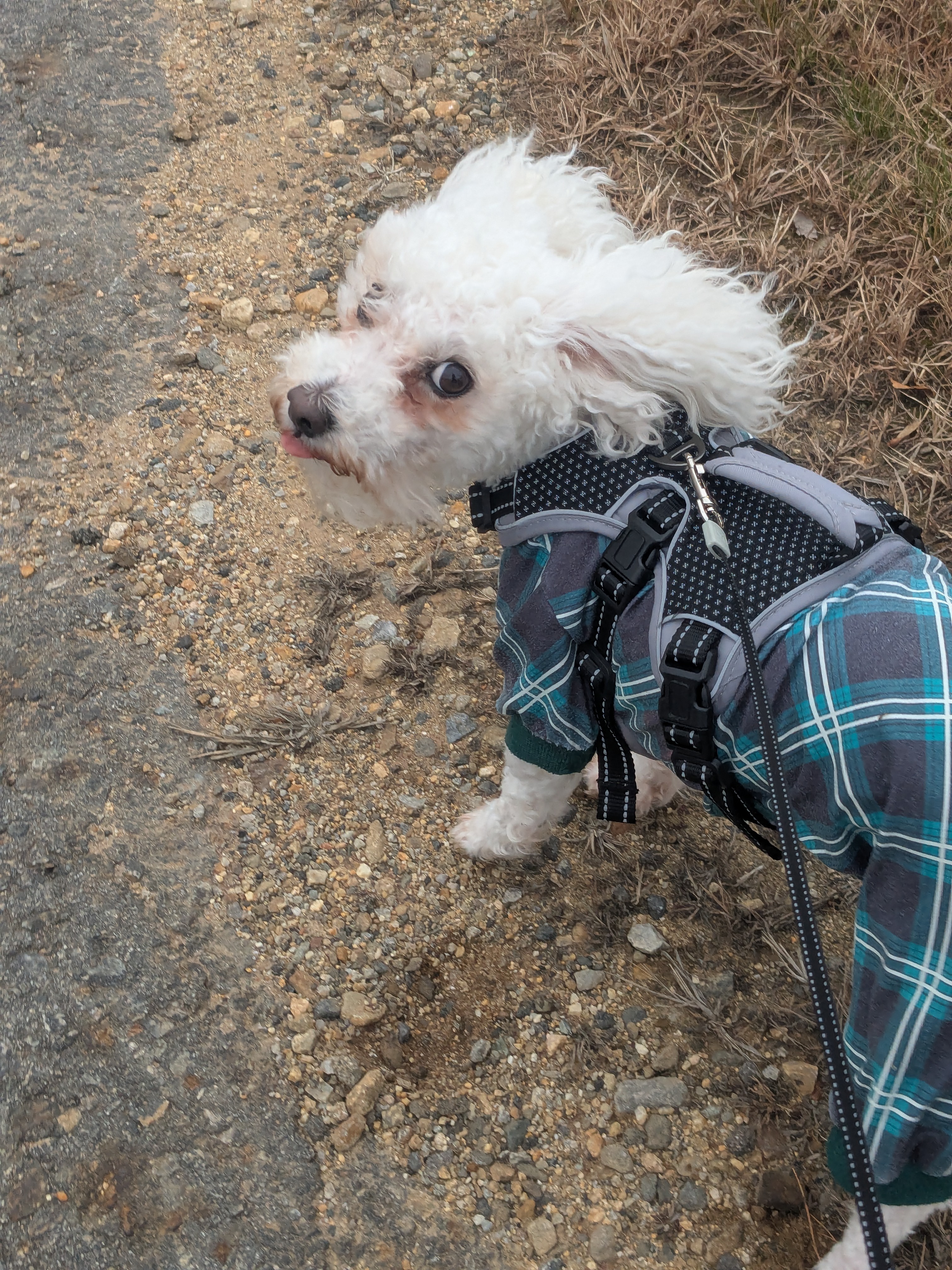Today as we set off for our adventure we ran across two of Mylo’s favorite furiends Lucy and Oliver! He ran so fast towards them when he saw them. It was adorable. So we joined them and Mylo wanted to be the leader and Lucy and Oliver were happy to follow! They sniffed and frolicked together. His tailed wagged the whole time. When it was time to head home, he said a sweet goodbye and thanked them for a fun walkies.