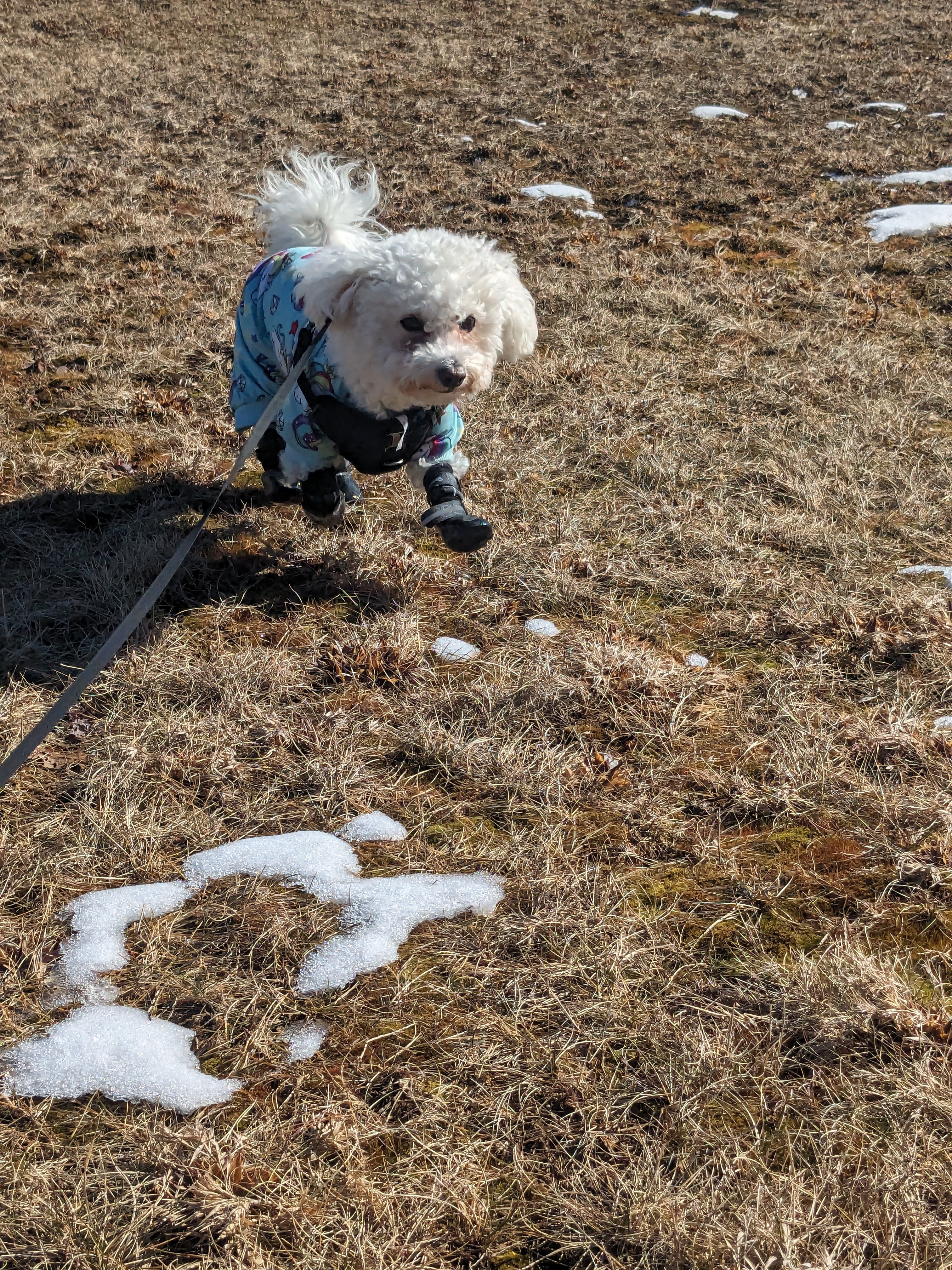 Mylo was so full of energy and ready to enjoy the beautiful weather! Being a sunny balmy 34ยฐ degrees, with no wind chill, it felt a little like spring! I could tell Mylo felt the same! He had an extra spring in his step.๐ท We a nice sniff and stroll with occasional sprint until we got to his yard. That’s when he said he wasn’t going back inside and proceeded to have the zoomies! It was adorable! โค๏ธ๐พ