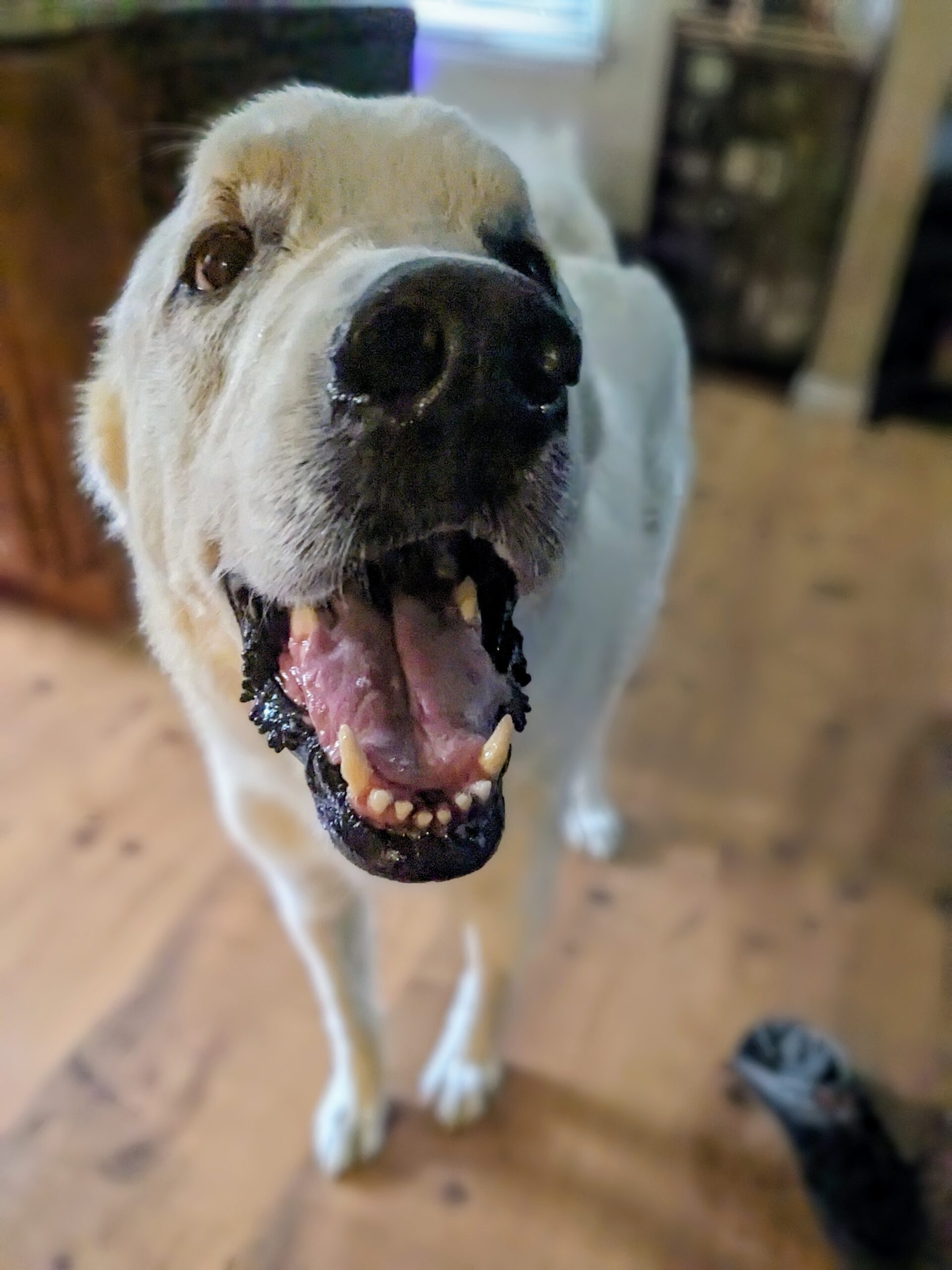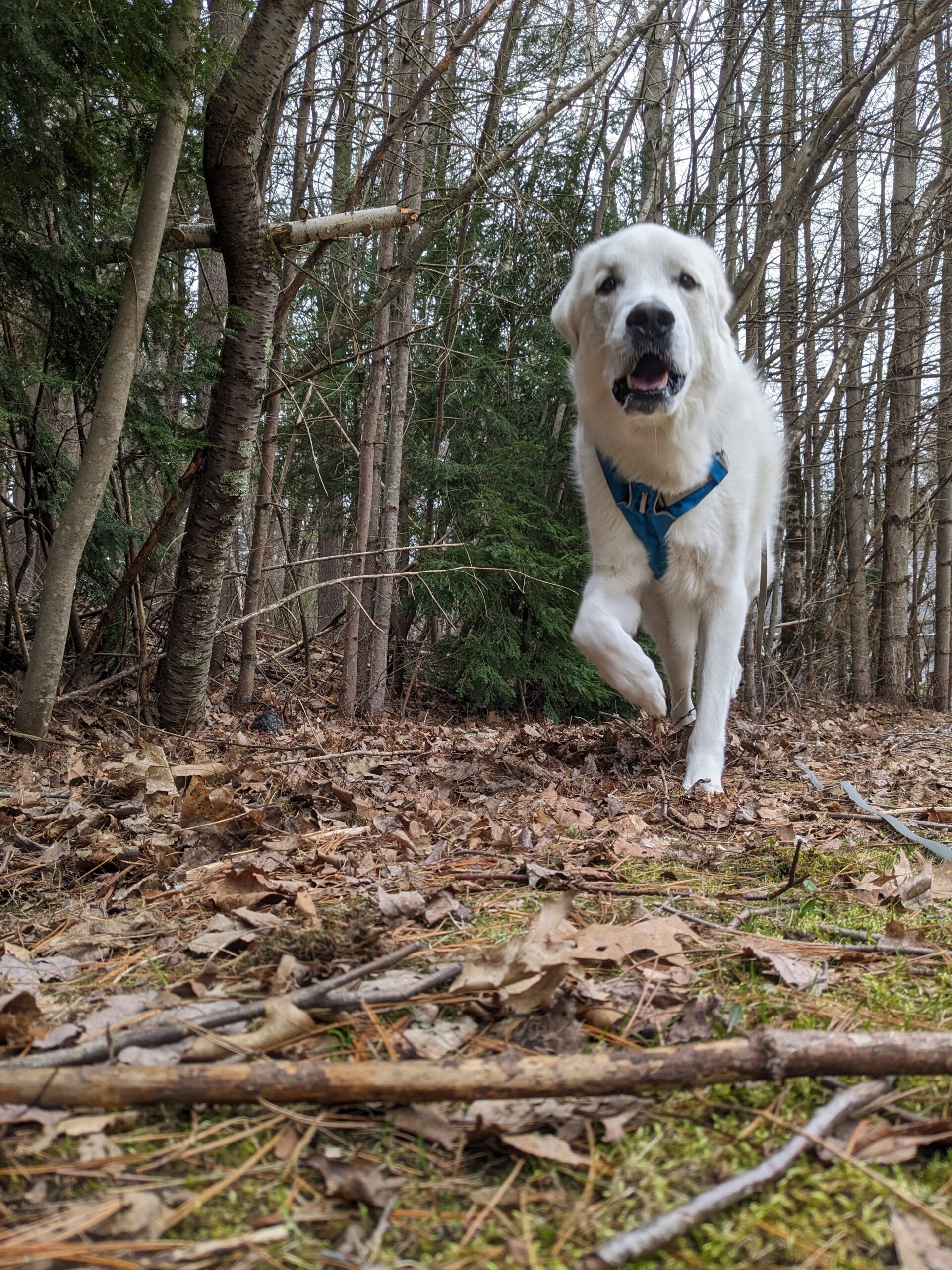 Mugs is such a happy dog! ☺️ He loves his walks and usually sticks pretty close to me. Usually… Today he was very excited and pulled me along the whole way. He would definitely make a good sled dog 😂 I quickly saw that he was pulling me towards another dog being walked, and of course as he got closer he wanted to say hello and make sure they knew he was boss. I kept him close and we turned in a different direction, but there were dogs there too, and mugs said hello to them as well. With dogs all around us eventually we had no choice but to patiently sit and wait for one of them to pass. Mugs did not like having to sit still or be polite. We will keep working on that. But I knew he was just being friendly, not mean, and the rest of the walk he is such a happy guy 🥰 So we both had fun and came back all smiles.