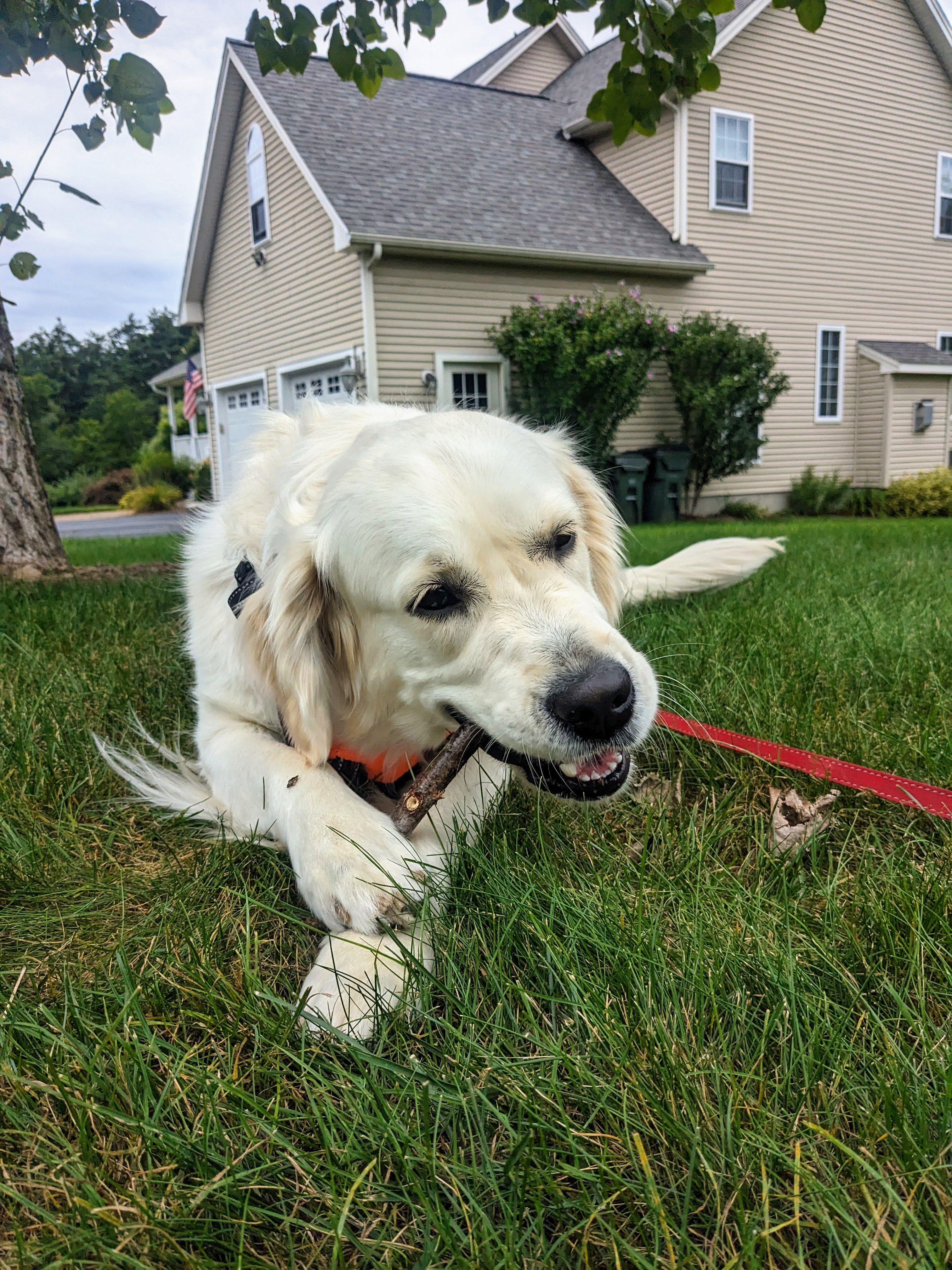I love seeing all the work you put into Bagel. She is so much better now about coming out of the crate calmly. And she was pretty cooperative overall on the walk. As much as she loves to sniff her real passion is digging and that was the only thing I really had to tell her no about. She is clearly still working on being cool around other dogs, but she was cooperative and patient. I can’t wait to see her again tonight.