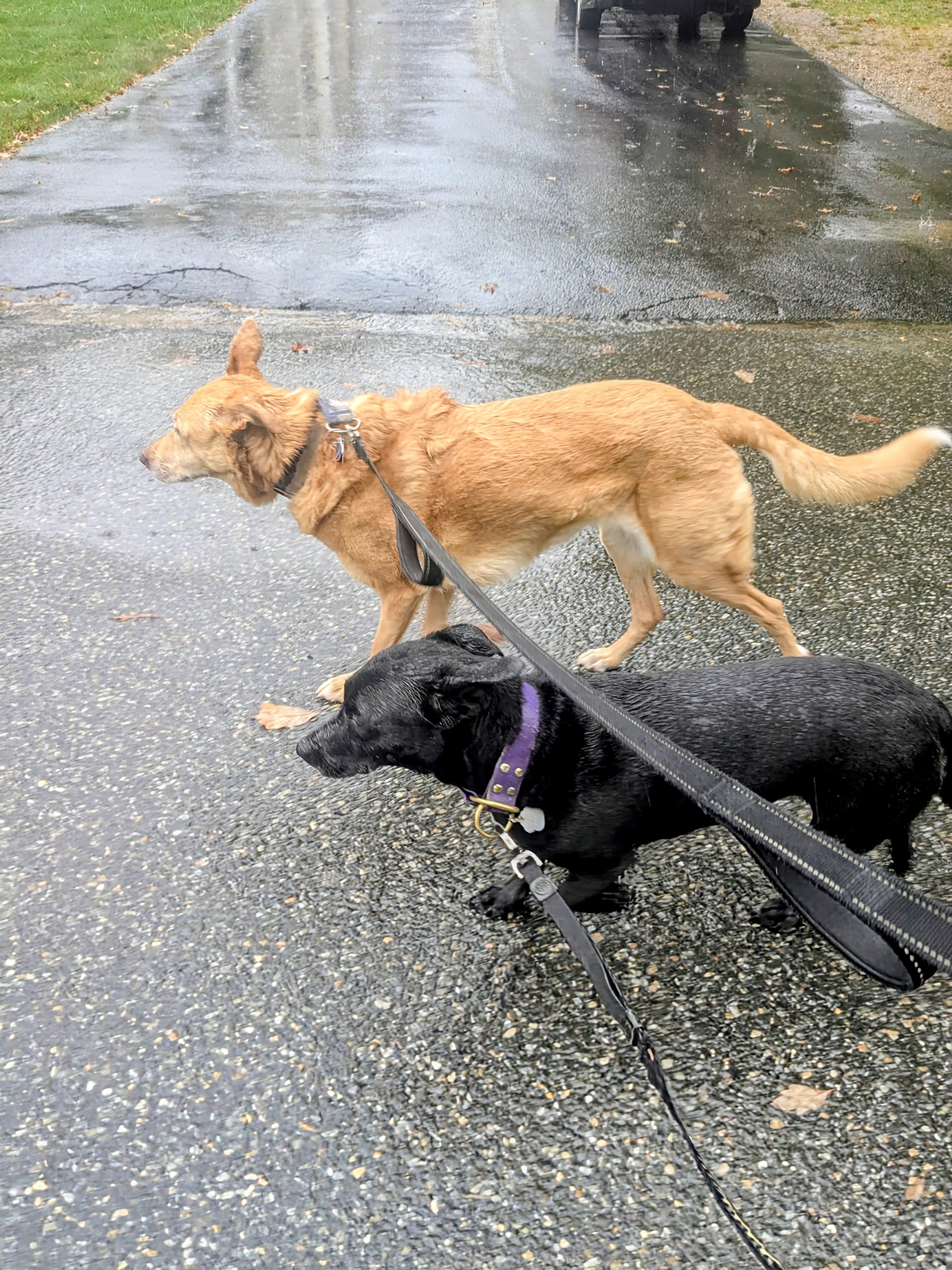 When I brought the girls outside they were not pleased to see it pouring but going for a walk is fun so they decided a little soggy is worth! They had so much fun splashing in the puddles and chasing leaves flowing down the street! When we got back inside they both enjoyed getting toweled off and enjoying an afternoon treat!