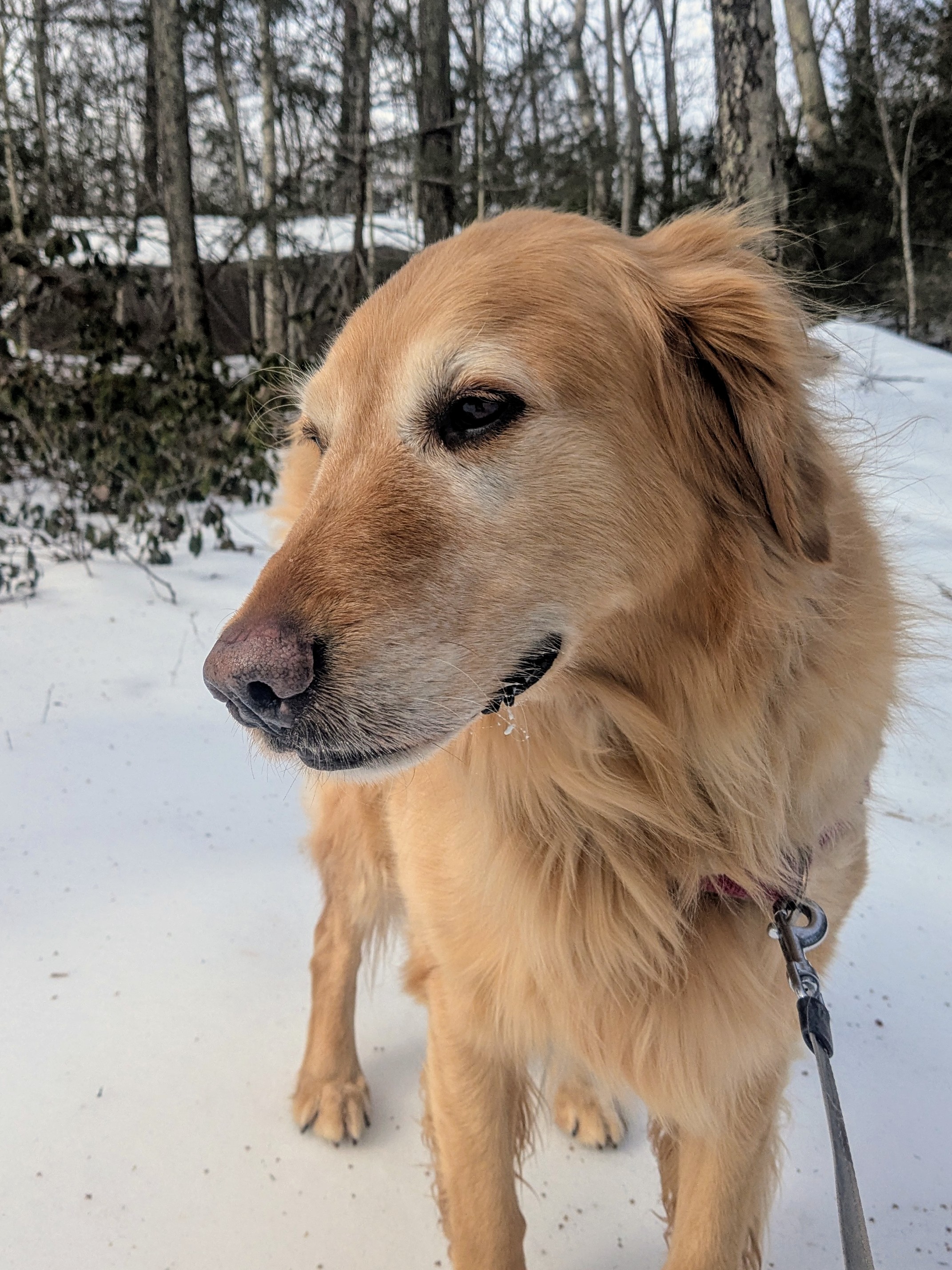 Julian didn’t mind the cold so much with his thick fur coat, but he hates the slippery ice as much as I did. It was great to catch up and do a couple of quick modeling shots (he’s still got it!) but we did it carefully trying to balance and not slide anywhere 😂 Even when we crossed paths with Arlo, Julian was angsty and pulled, but way less so while we were on ice. When it’s this cold, Julian knows not to lose his cool! 🥰