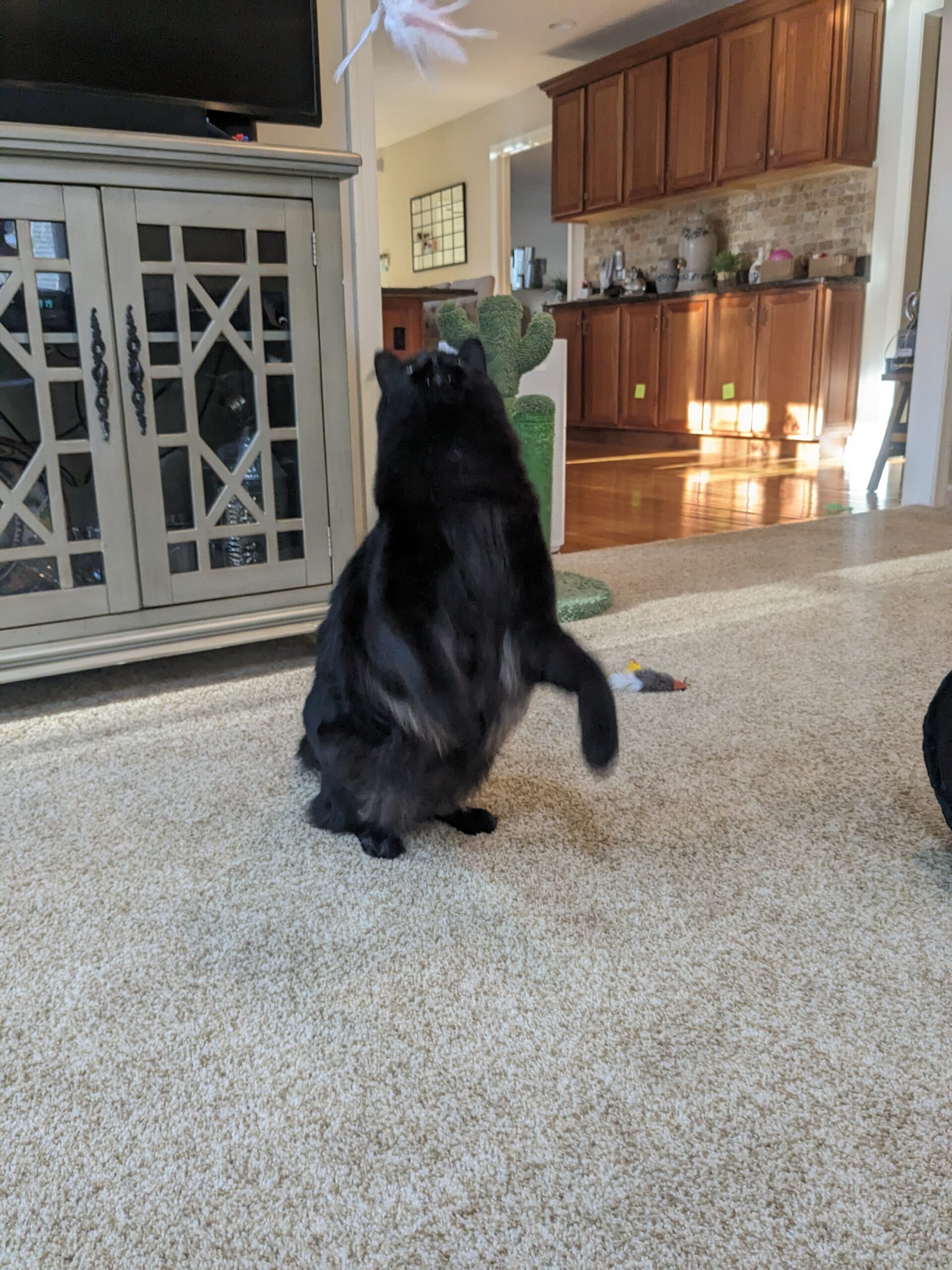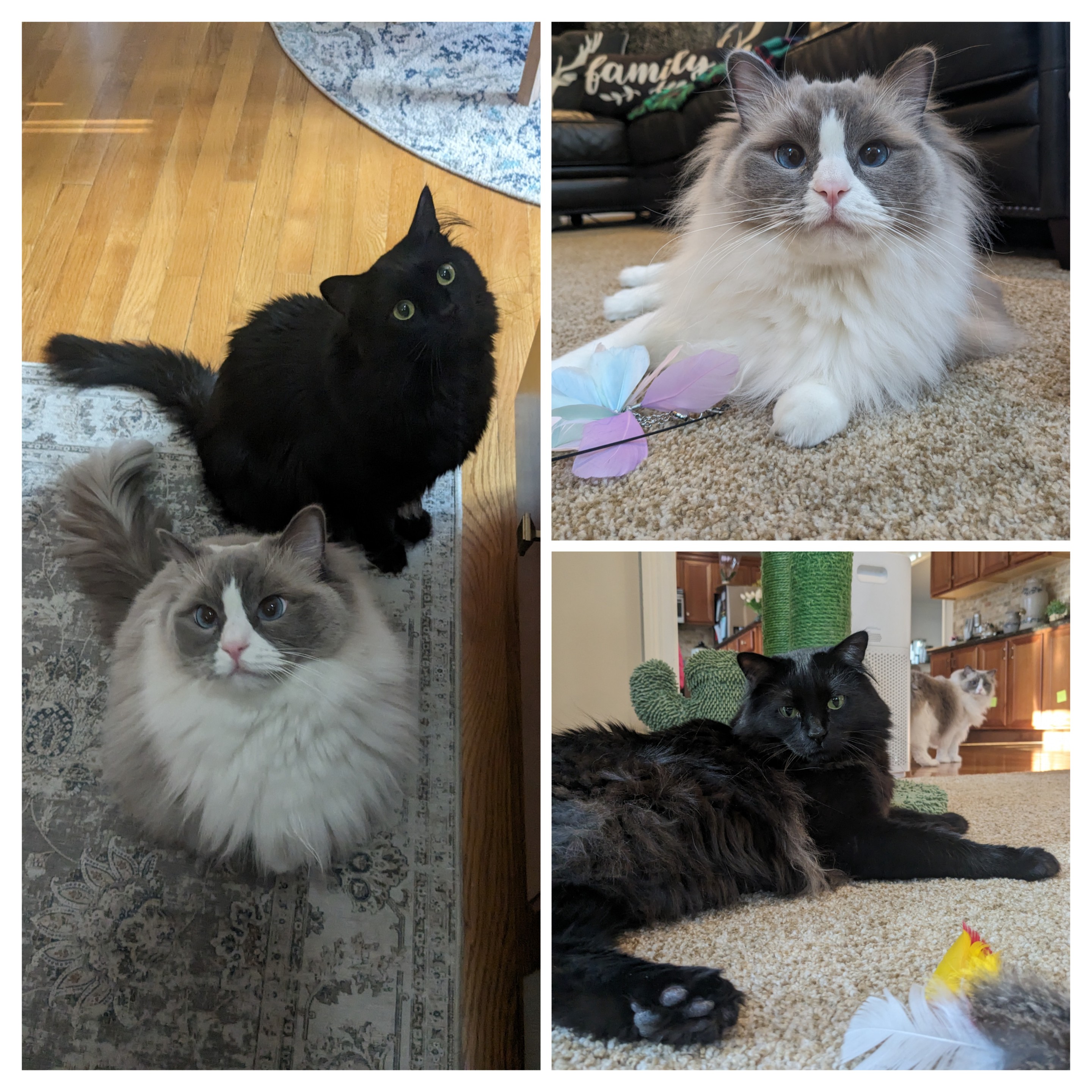 Caturday mornings with Elvis and Toby never disappoint! 😹😻We had so much fun playing with some toys! Elvis was flying through the air trying to catch the a birdy feather wand! I was really impressed with his jumping skills. He was like a cute fluffy kangaroo 🦘 Toby was all about chasing the laser, scurrying around the living room floor catching that dot every single time! After our playtime they both enjoyed a few treats and some welcomed chin scratchies. 😻😻