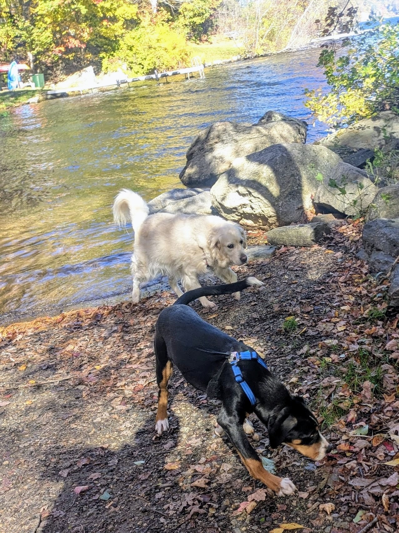 Bagel was sorta down today right from the start, and I had hoped a visit from Pippa would cheer her up. But Bagel’s funk wouldn’t break and she kept back while Pippa and I walked close together. We had the inner circle and she wanted the outer one. But eventually Pippa’s inexhaustible joy lifted her spirits. They stopped and investigated some playful waves by the water and seemed to feel better. She decided Pippa was cool after all and the 2 of them played all the way home.
