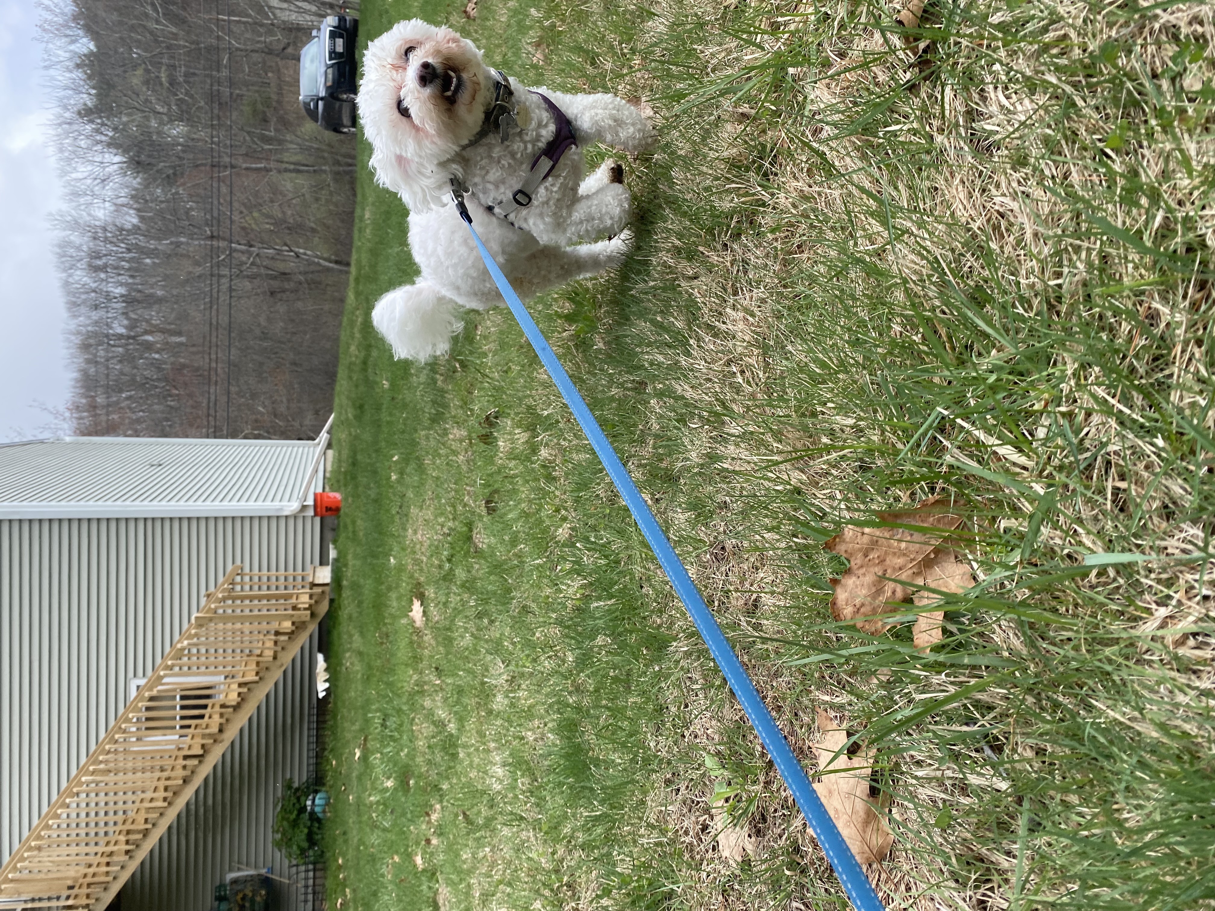 When I walked in today I could tell by the smell there was going to be an accident lingering in the home 😂 Poor sweet Lilyloo had an accident but we got her all cleaned up!! It was saturated in her leg the hurt leg so i did my best to wipe it down with a wipe as gentle as possible. I didn’t get it all but most of it is off and she has some on her head 🙁 poor thing. I didn’t give her a goodbye treat in case it upset her belly. She was her happy frolicky self outside though!! She peed a bunch and i didn’t take many pictures i was really focusing on her behavior and she did seem like herself!