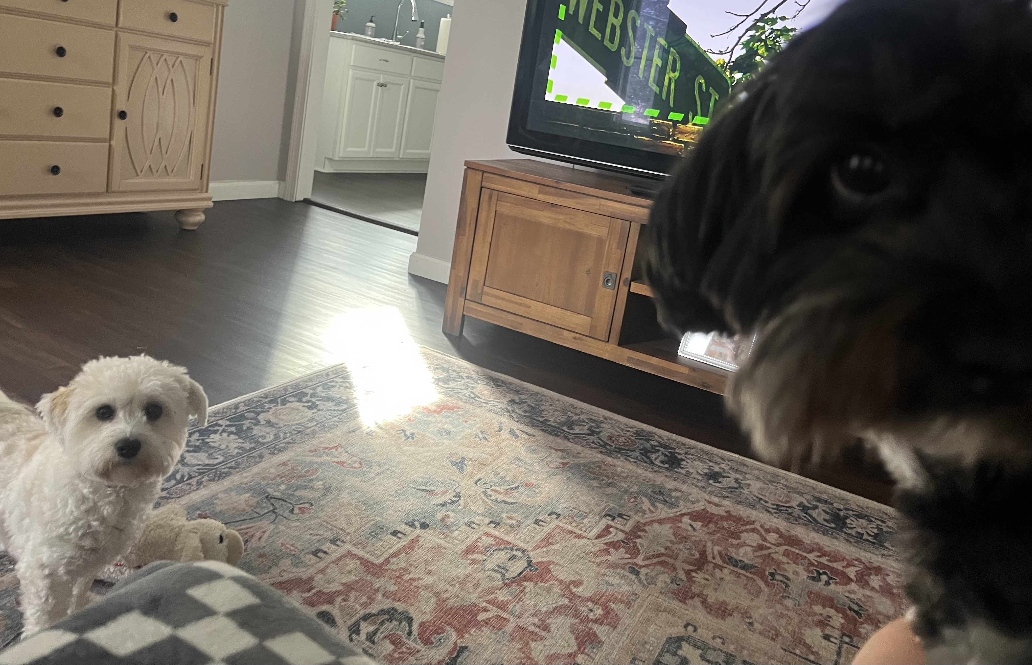 Looks like the pups had a good night last night ! The tiny bit of their dinner they left was gone and all the treats.