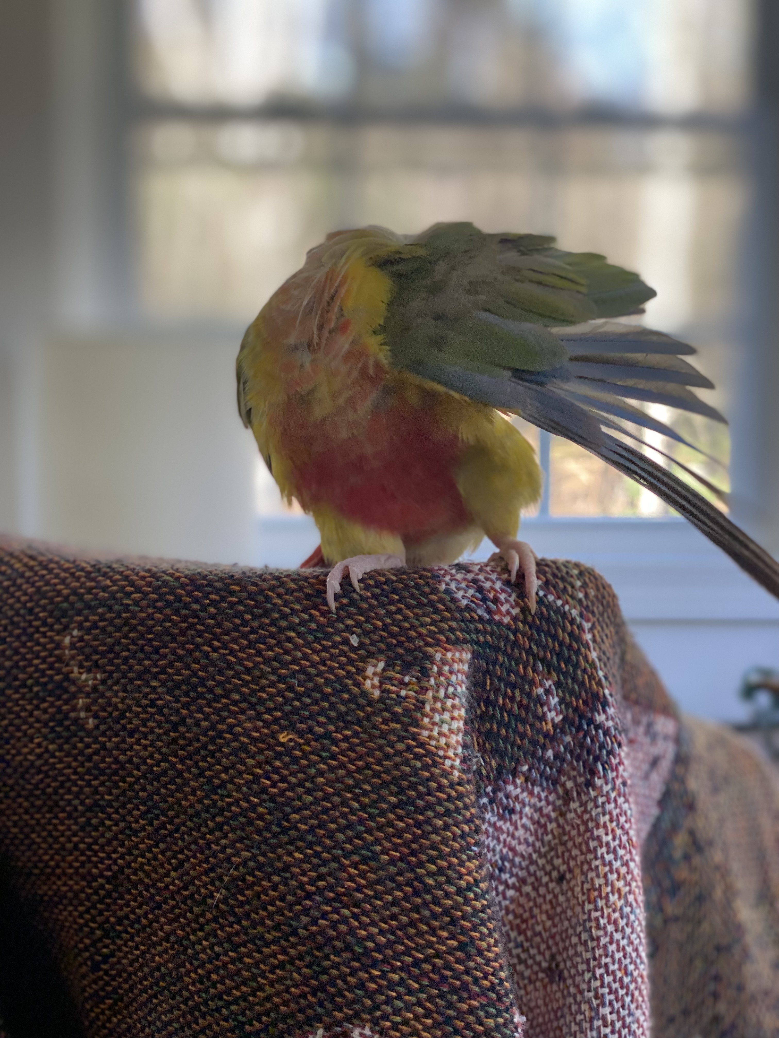 Kari was absolutely adorable for the entire time spent with her. We cleaned out her cage and when we did she would eat her fresh food from her container and grab a piece hold it in her mouth and scurry up my arm to enjoy it from the height ๐คญ It was the most adorable thing. She then wanted to show off her beautiful feathers so she flashes them for me and stretched out her neck and really let me admire her beauty and I’m sure she loved every second of that admiration ๐คญ As she should!!! She is stunning!