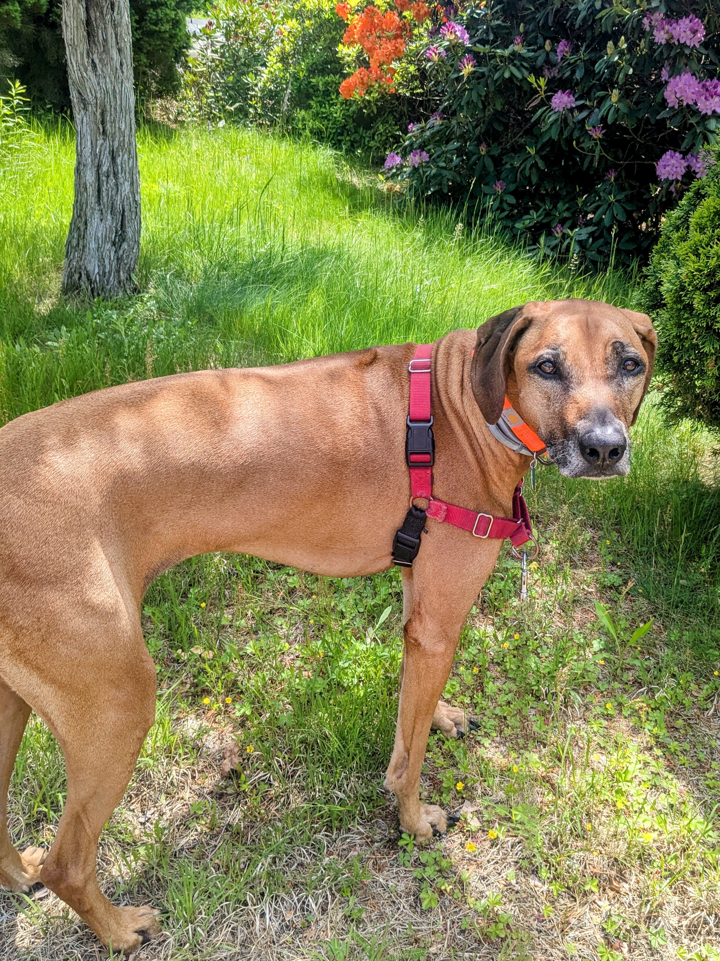 Right from the start we encountered critters! First we said hi to the ever elusive chipmunk🐿️ by the front walkway, then we got buzzed by some cute Bumble Bees🐝 in the flowers. Brienne tracked a cotton tail rabbit too! 🐇 They had a stand off for a bit. She was a good girl and just watched it as it hopped away! But fear not, more critters were out along our route! There were a few more chipmunks in the brush that she wanted to seek out! She was so adorable poking her nose all around to found them! It was definitely a wild adventure today! ❤️