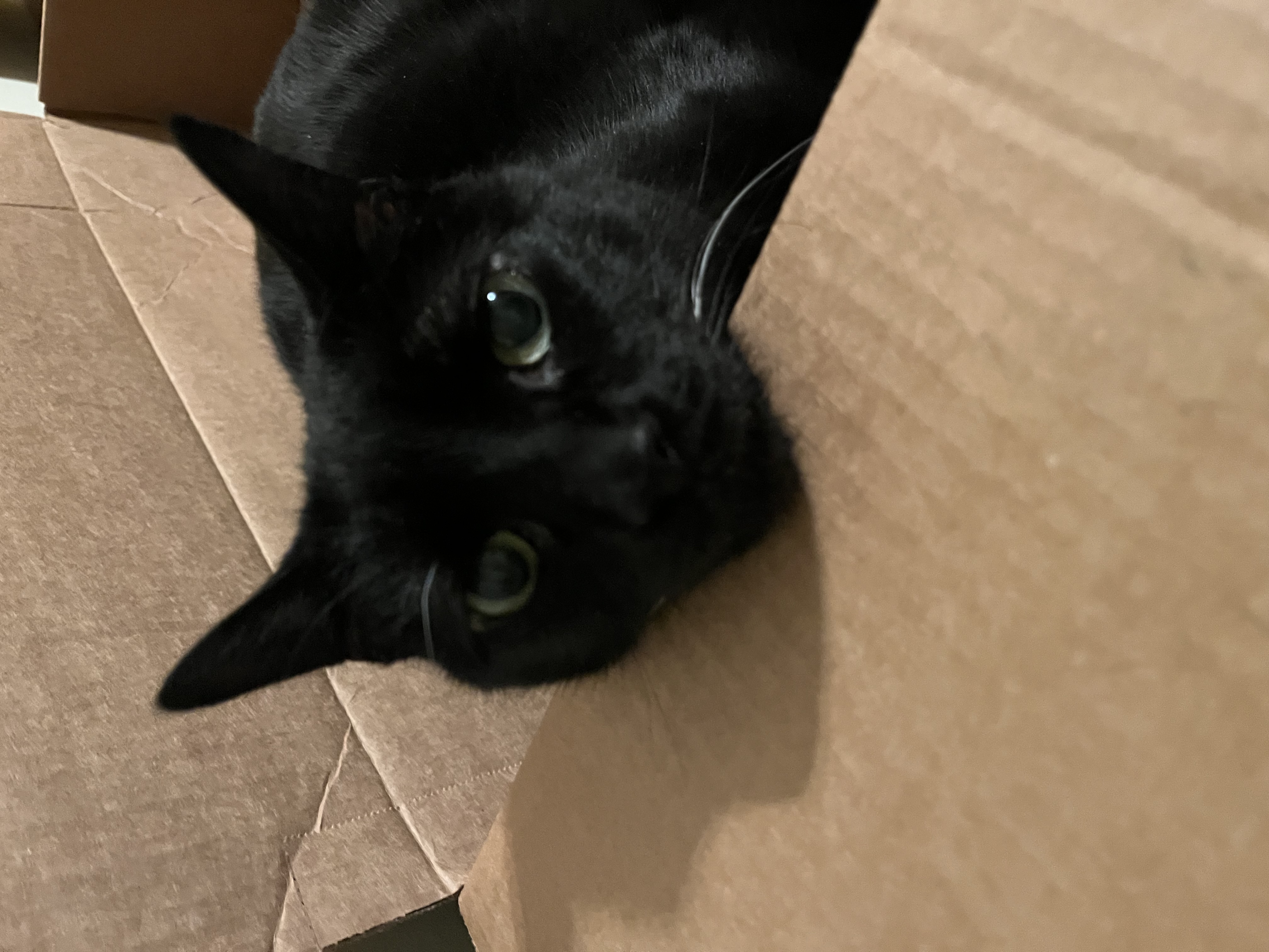 Ginger welcomed me with open paws!🐾 🥰After dinner she demanded pets & butt scratches while Cash tried to decide which box was best to cuddle up in.