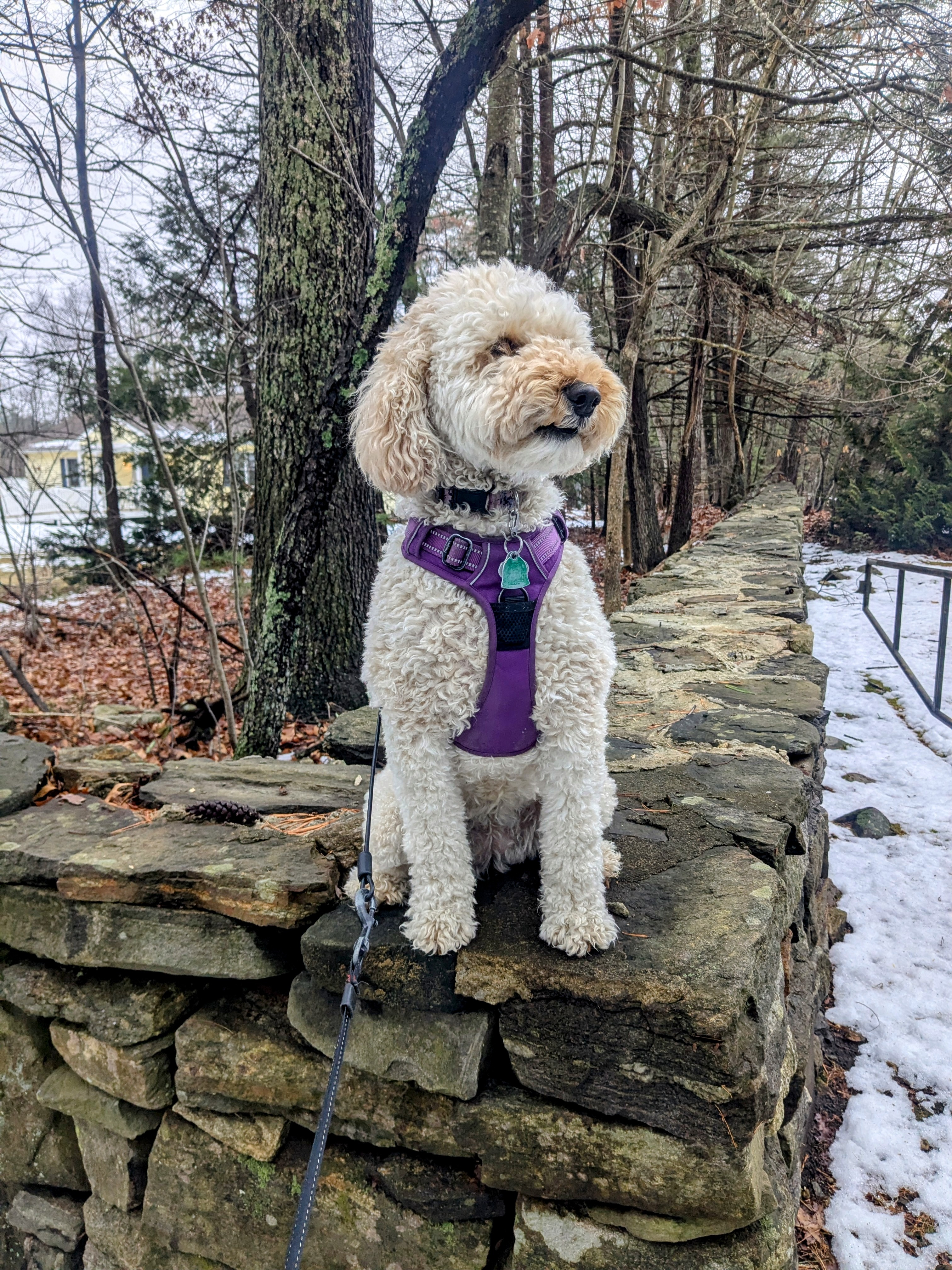 We had a nice a chill walk today which was so nice before the rain comes tonight. At one point Millie perched herself up on a high wall and just took a moment to look around and sniff and see the world in a different perspective. It was a nice pause before there was stick chomping and snow licking too on our adventure 🤣but all and all just to furiends enjoying each other’s company. ❤️🐾