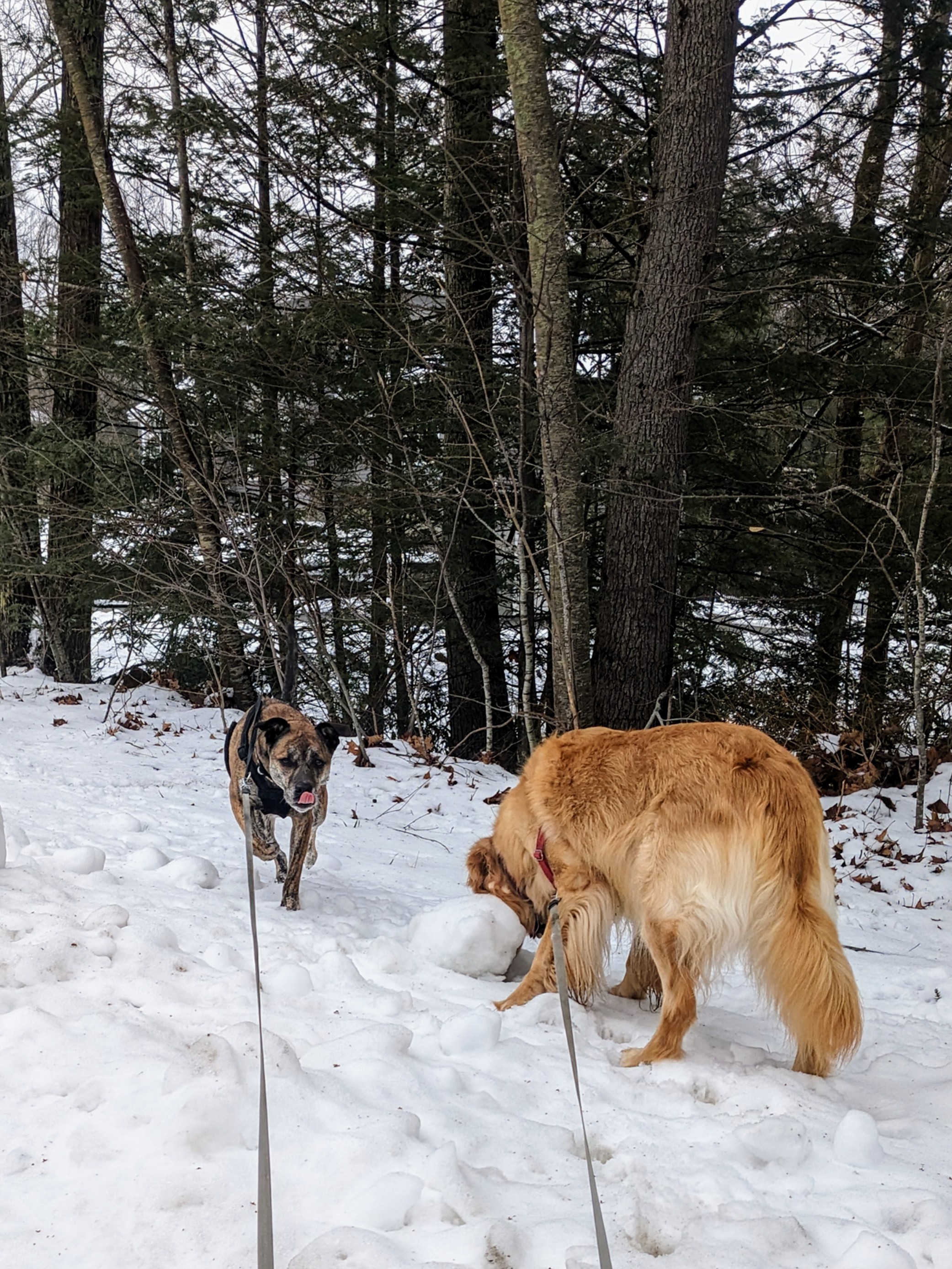By Friday Julian and I have had enough guy time and Luna joins us for a change of pace. They are absolutely adorable. From one side of the street to the other, checking out smells and seeing what the other one is doing. ๐Ÿ˜ Luna of course. Does a lot more running around then? Julian. But he does go a lot faster with her around. Of course, it also means it’s a lot harder to distract them from the fact that Arlo is walking by. There are double the barks as well ๐Ÿ˜† but they really are such sweet, cute, really smart dogs. They could be double the trouble and I still wouldn’t care โ™ฅ๏ธ