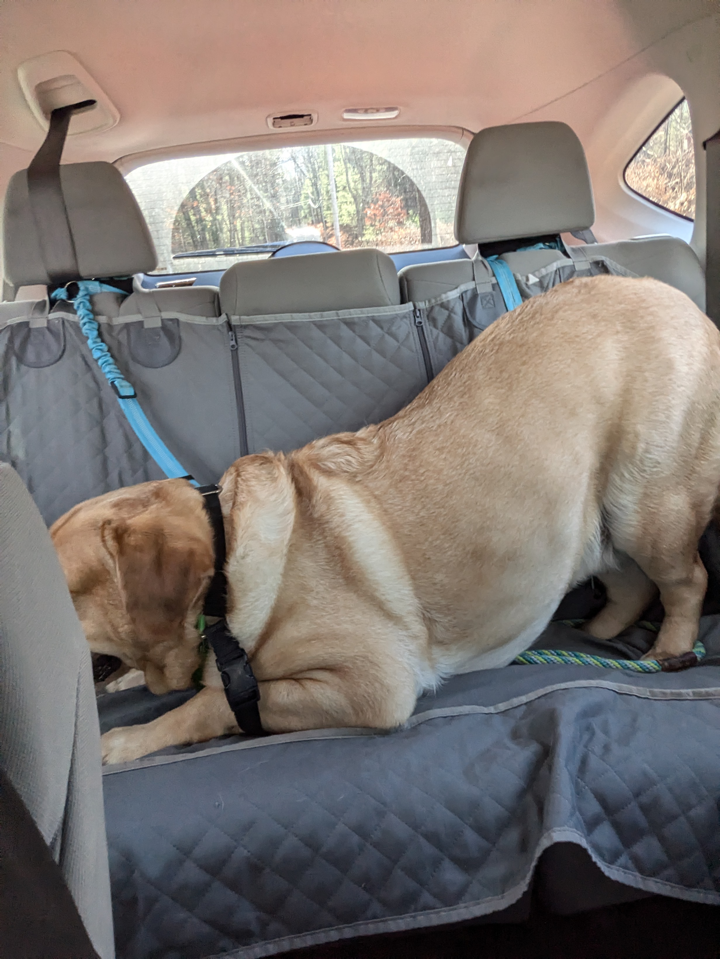 Every dog has their own style for riding in a car. Some like to stick their heads out the windows, others recline and enjoy the views. Charlie likes to do yoga in my back seat. 🥰 Maybe it stretches him out for our walks or maybe he’s just super relaxed 😎