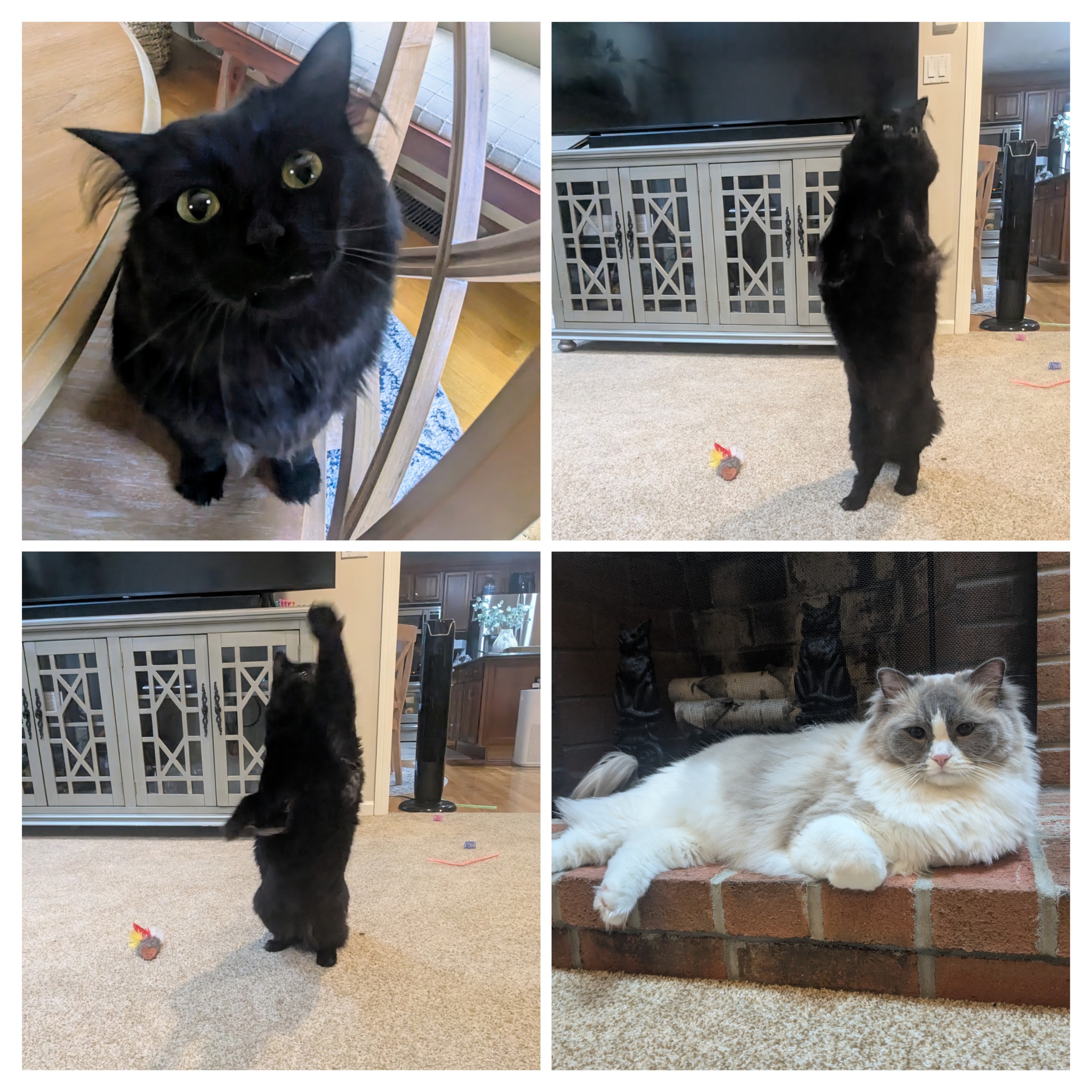 Tonight Elvis decided to put on a show for Toby and me and show us his amazing dance moves! 😆. After the dance party we had a nice chill time getting lots of love. They also requested a treat scavenger hunt before I left. They love the hunt!