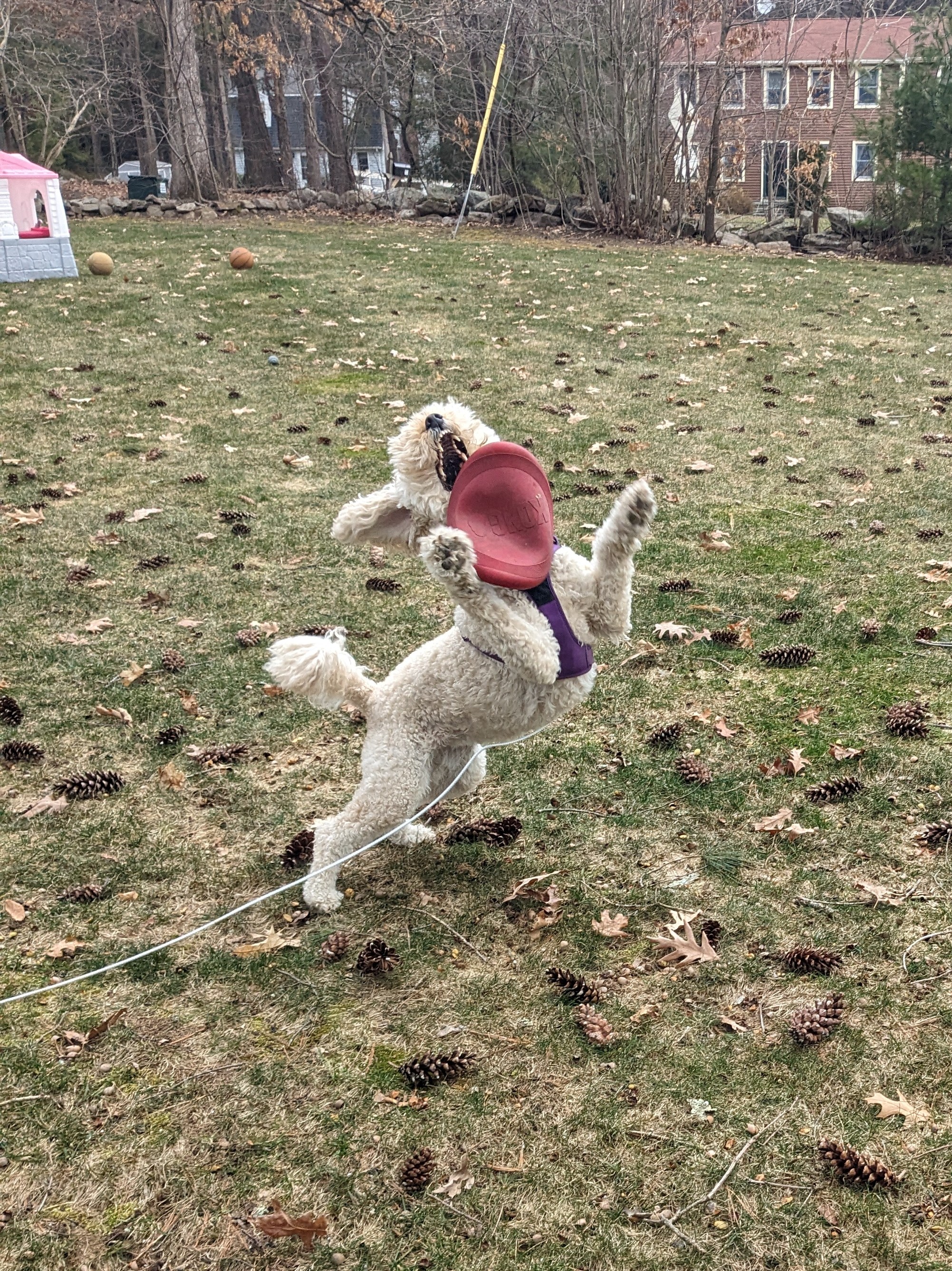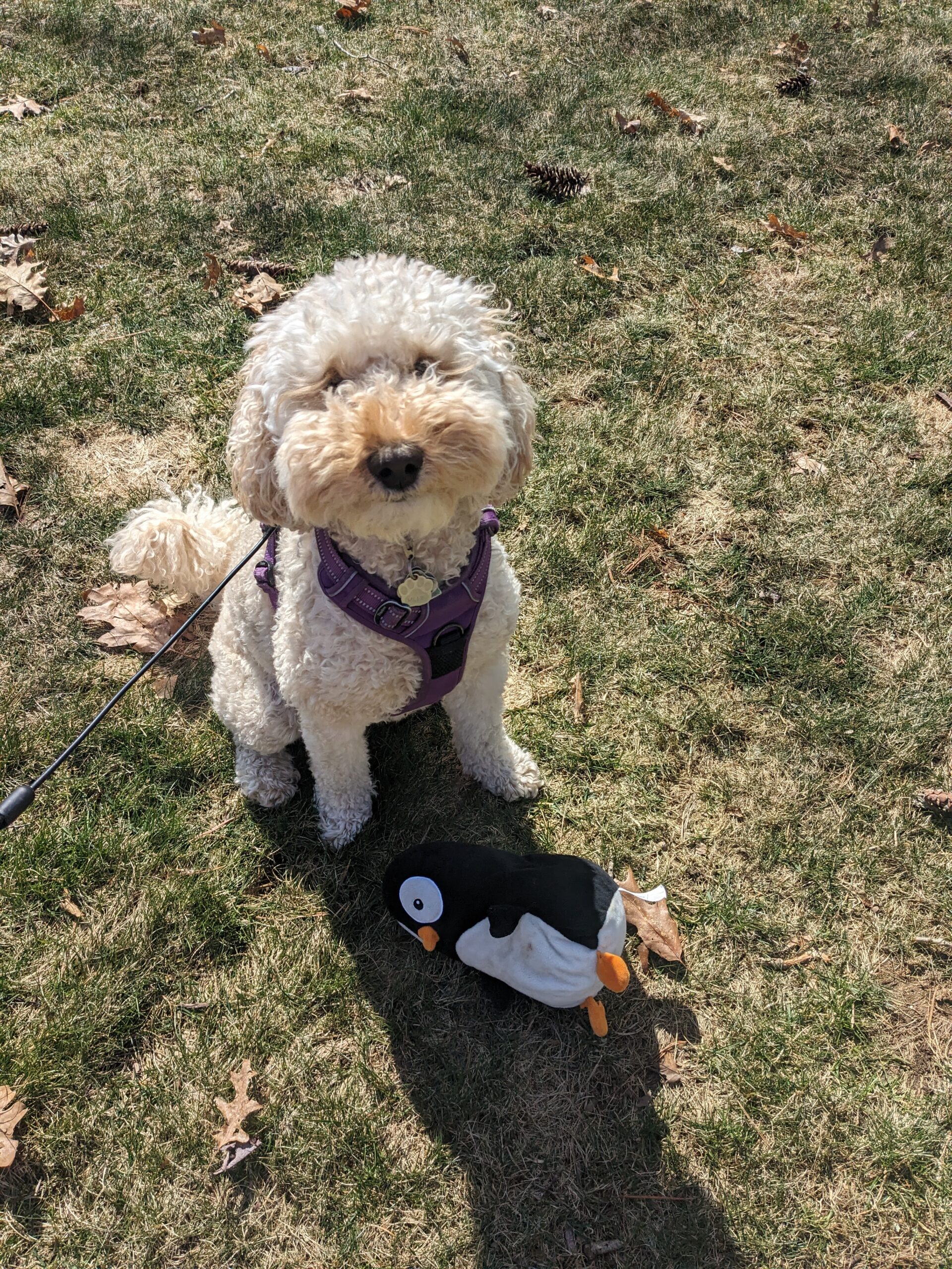 The cold and brutal wind didn’t stop us from having a blast. She greeted me with her 🐧 again today and refused to leave it inside. She played with it by flinging it around in her mouth for a bit before we headed out on our walk. 🤣 We found great branches to chomp and she even decided the ground sticks weren’t enough so she decided to jump up at some saplings to get the super fresh sticks. We had an epic game of frisbee and of course keep away too!
