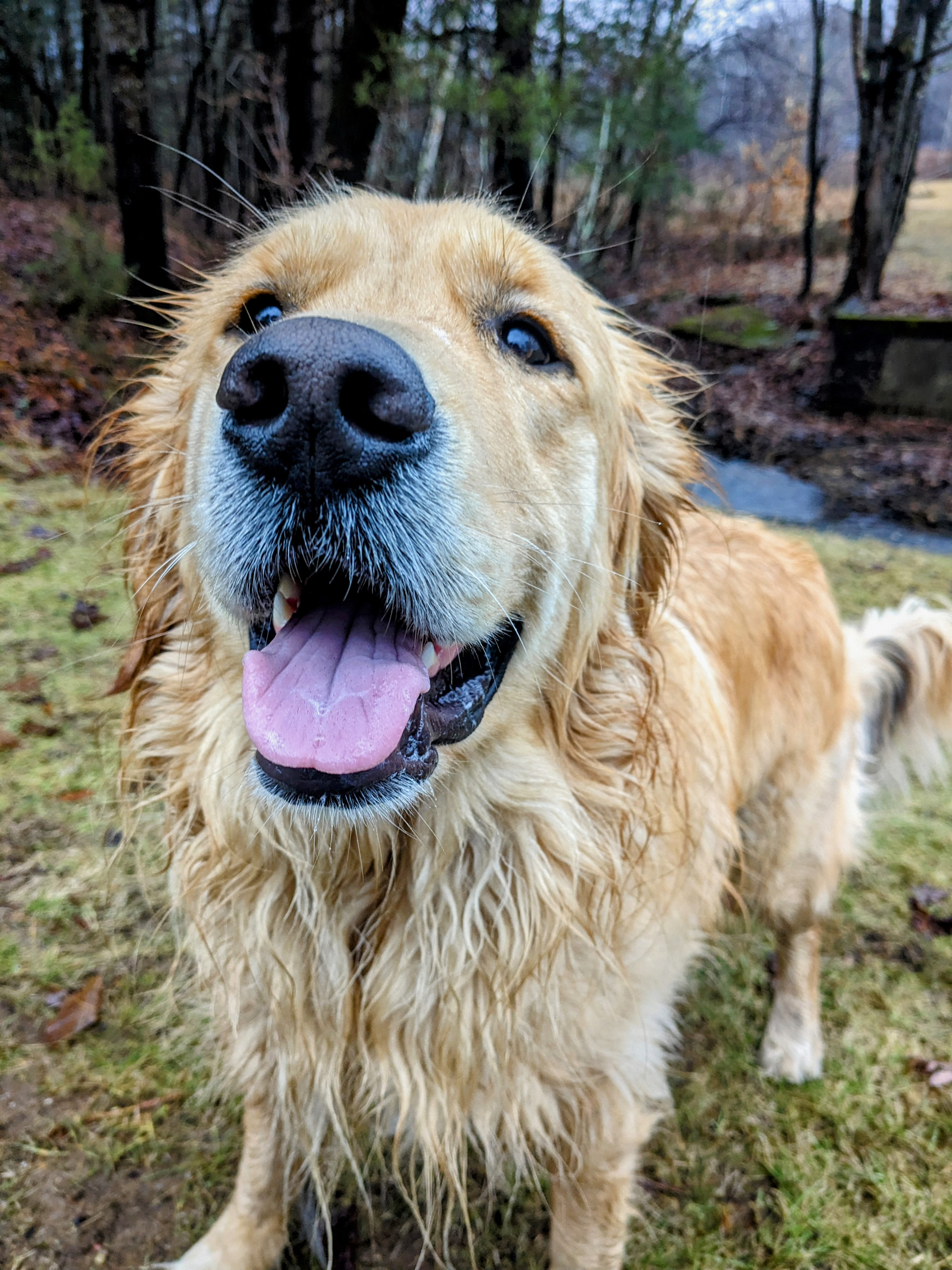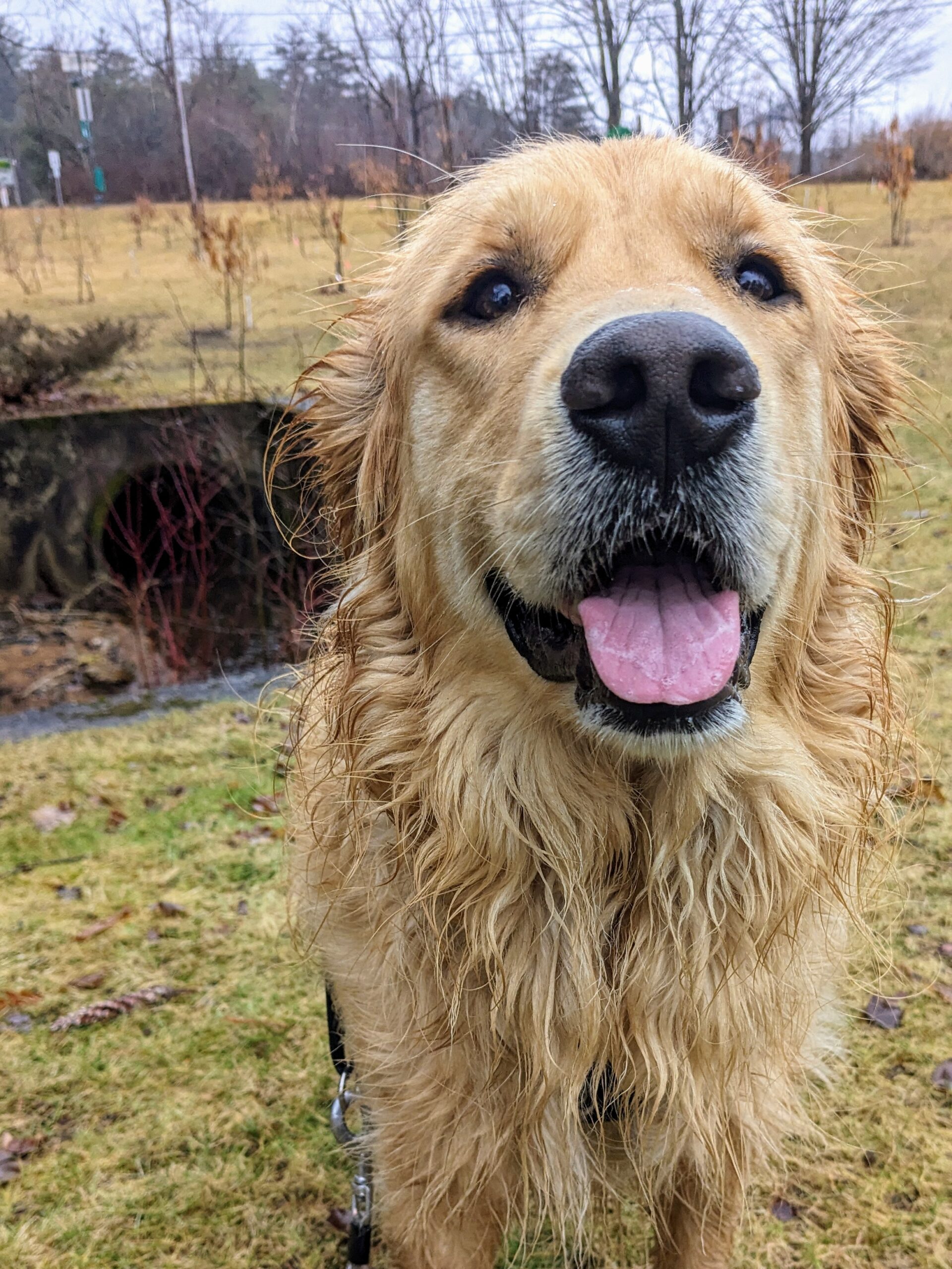 I thought the rain would dampen Beau’s spirits for a walk but I was way off. He didn’t mind the water coming down one bit and shook it off occasionally without a second thought. He reveled in the freshness of it all, getting surprised when he got dripped on from a branch. He even managed to briefly get into some mud! I wondered why Bo enjoys this weather so much, but it became obvious when I looked at his photos. When it comes to the wet look, Beau is a pro! 😂
