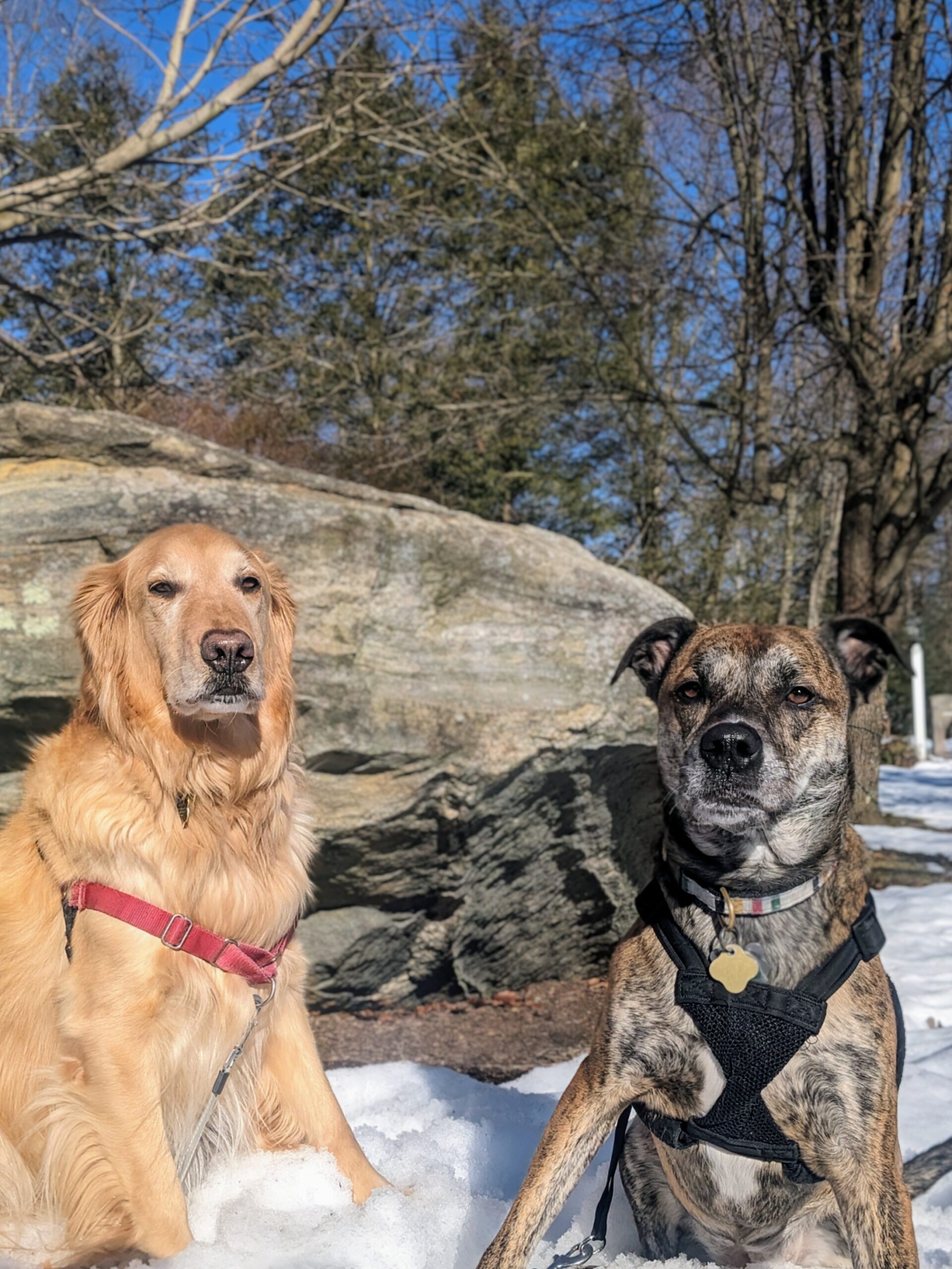 What a beautiful day for a walk, especially when your friends can come! Luna was BEGGING to join us and I had no reason to say no. 🥰 There was nobody around for them to get in trouble with so they were just the bestest doggos running around smelling stuff, enjoying the sunshine. They were so good they even grudgingly posed in the snow for me ❄️🤣