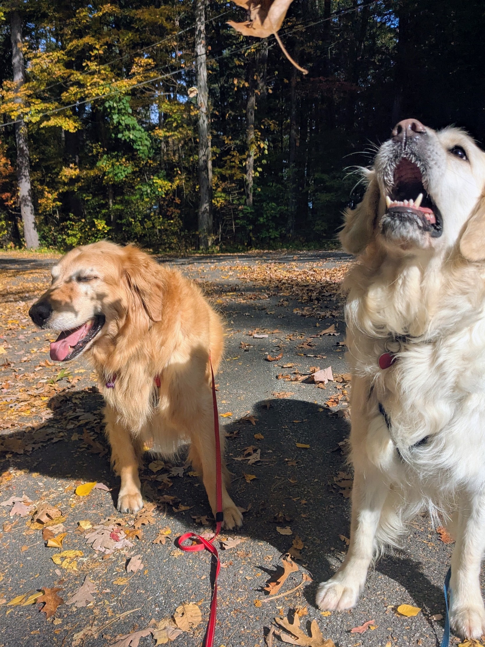 The kids were lavishing in the weather and each found out a way to act out like it was still summer vacation. Miss Bagel refused a ride to the trail despite our best efforts. And Julian found himself mouthing off to a passing dog. But cuteness and sweetness doesn’t have to be perfect, and these otherwise perfect angels deserved all the fun they wanted. ๐ฅฐ We made it to a different The Trail and found time to gawk at boats and play with leaves. With scary ghosts and witches starting to lurk, it’s good to have such bold and brave company! โบ๏ธ