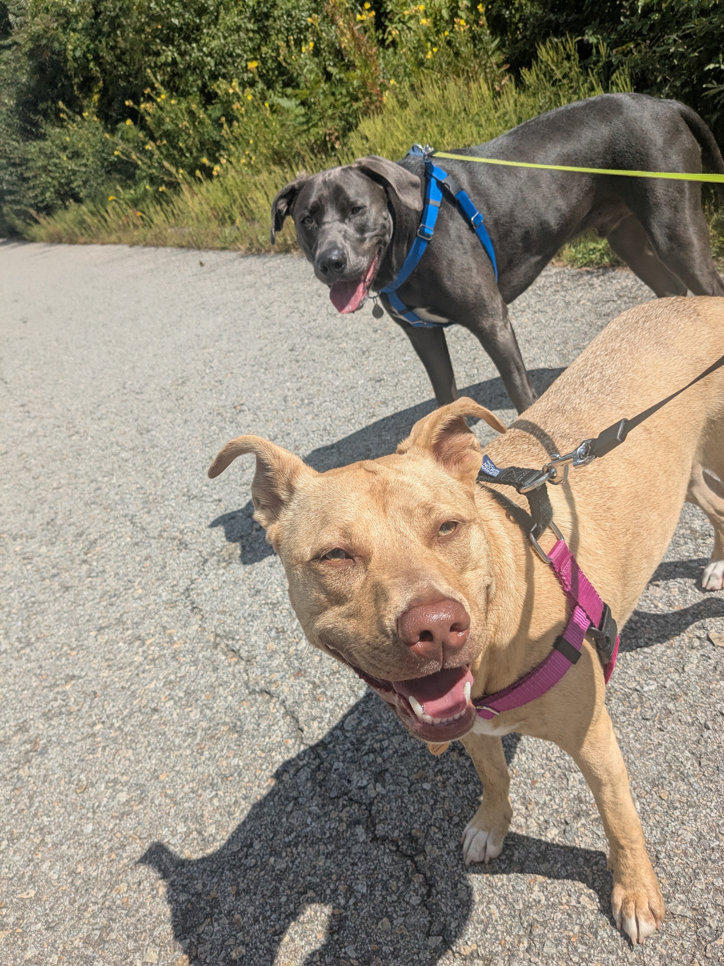 I was so happy to see Lucy & Oliver today! They have been a little under the weather after an amazing vacation. And what makes me feel better after feeling kinda icky? I lovely walk in the fresh air and sunshine! We sniffed so many wild flowers and Oliver made sure to roll in the only damp grass on our route! 😂 Lucy found a paper bag and decided to shred it to the best of her ability! It was hysterical! Some time in the outside today was just what we needed!