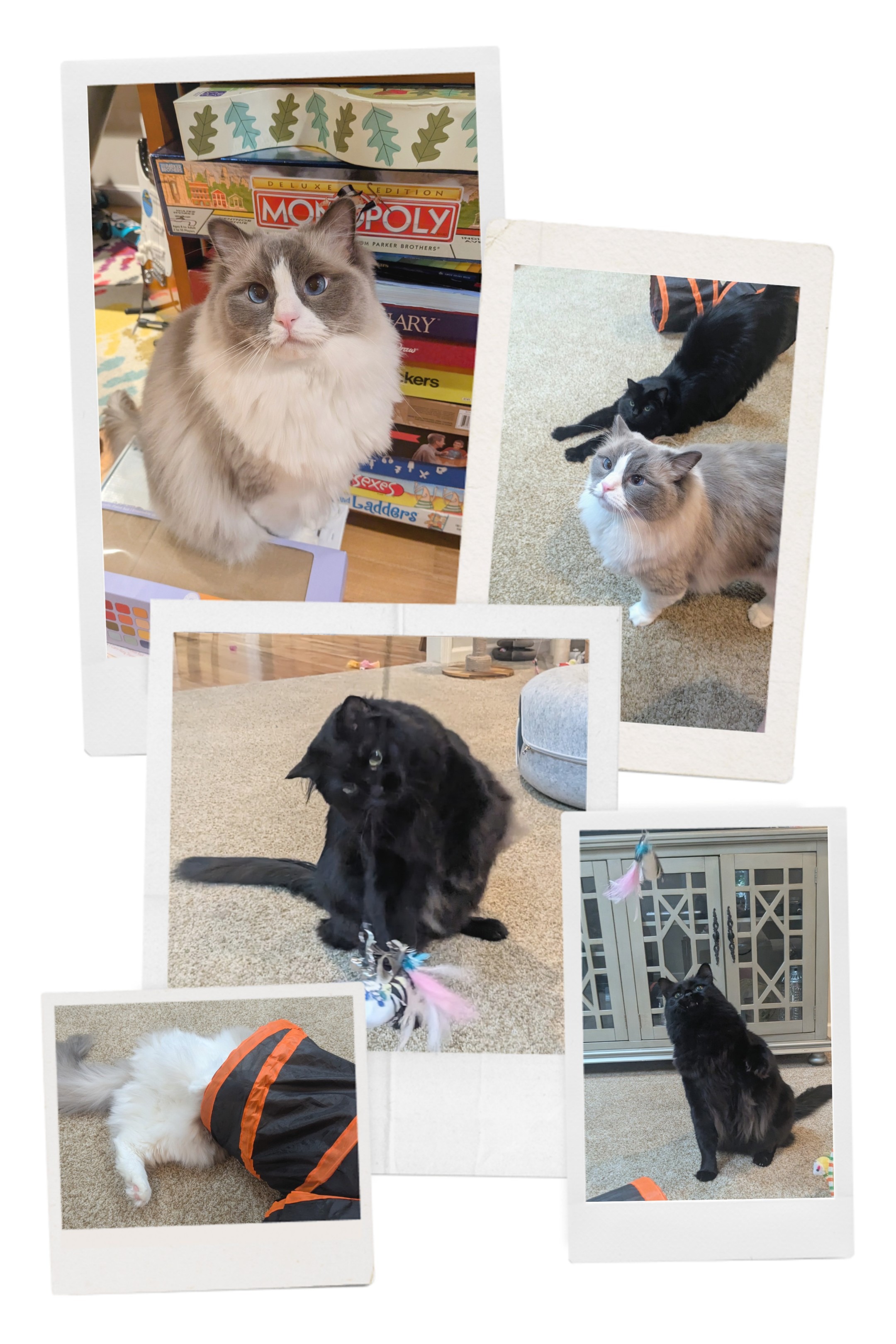 Toby took advantage of a lazy Caturday morning and took his sweet time coming down to hang with Elvis and I. Elvis on the other hand greeted me when I walked in and was my shadow while I got breakfast ready and then we had some one on one petting and chin scratchies. ❤️ When Toby did finally show up, he sat right in front of the games shelf as to hint it was time for some fun! Well fun we had! We played in their tunnel and chasing the laser and wands! It was awesome!