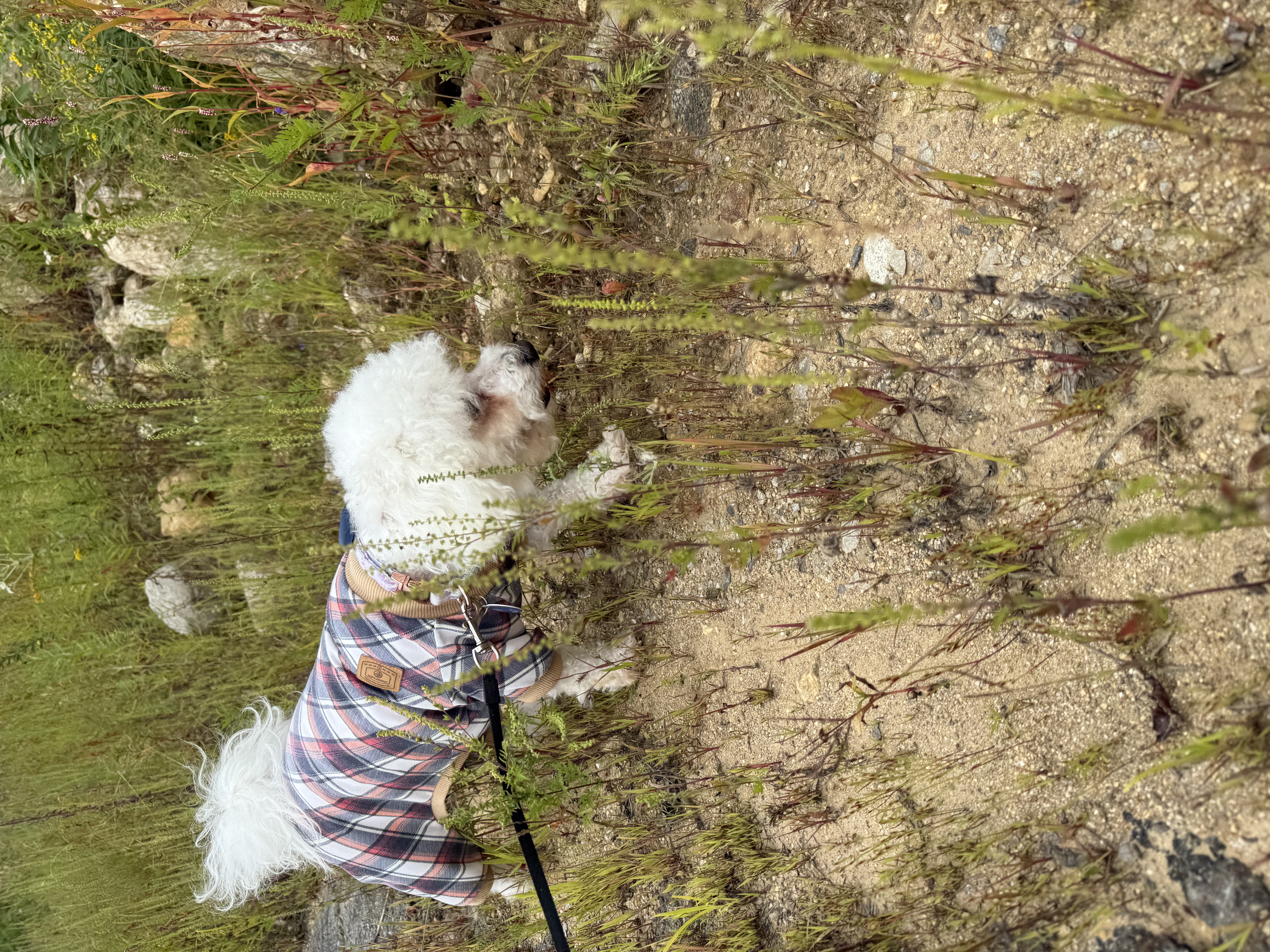 Today mylo looked like a little grasshopper in the long grass. For the most part he stays on the short grass but not today. He had a little stick stuck on his hair but i picked it out for him and i think he remembered why he stays on the short grass! Mylo was super excited to go on a walk today when I arrived he was making lots of happy noises. ❤️