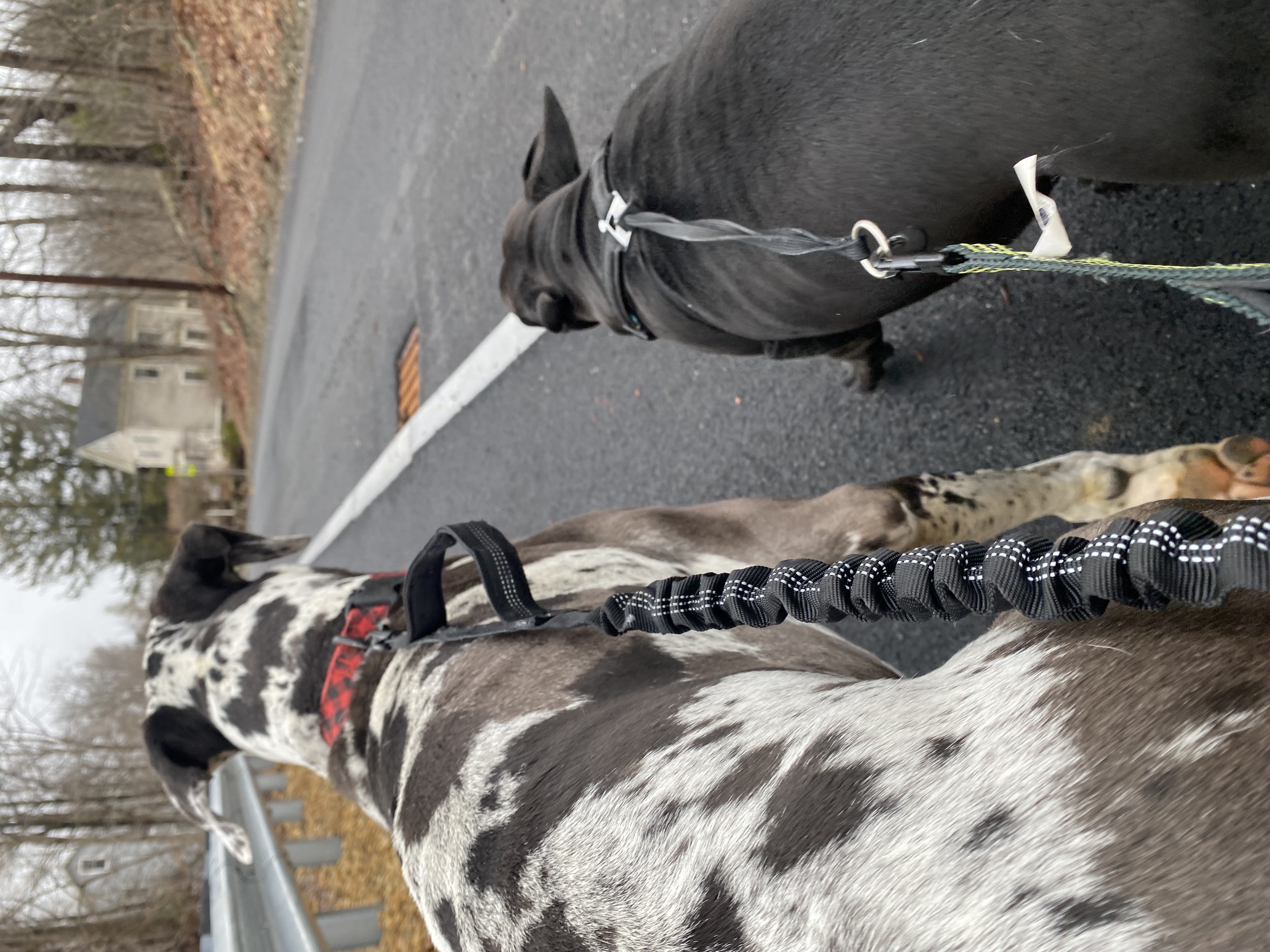 So! I’m a genius and figured out how to walk two pups with so much more ease!!!!! So today was Gus’s lucky day!!! He got a 45 min walk today!!! Instead of doing 15,15,15 today I did Gus for the whole walk with Jada round one on the street for a 20 min walk and Jake and Gus on the trail for 20 min!!!! 5 min give or take switching Jake and Jada out so Gus benefited the whole time! I can’t wait for that to allow one pup to get a 40 min walk at least once a week!! And two twice! And a longer walk for the others! Such a win win! It was clear after the walk today that everyone was significantly more tuckered out which is awesome!!!! I stayed a few extra minutes to fill the water and watch everyone drink some. I like to know they are hydrated after their walk esp if longer 😊 Let us know how they are when you get home!!!