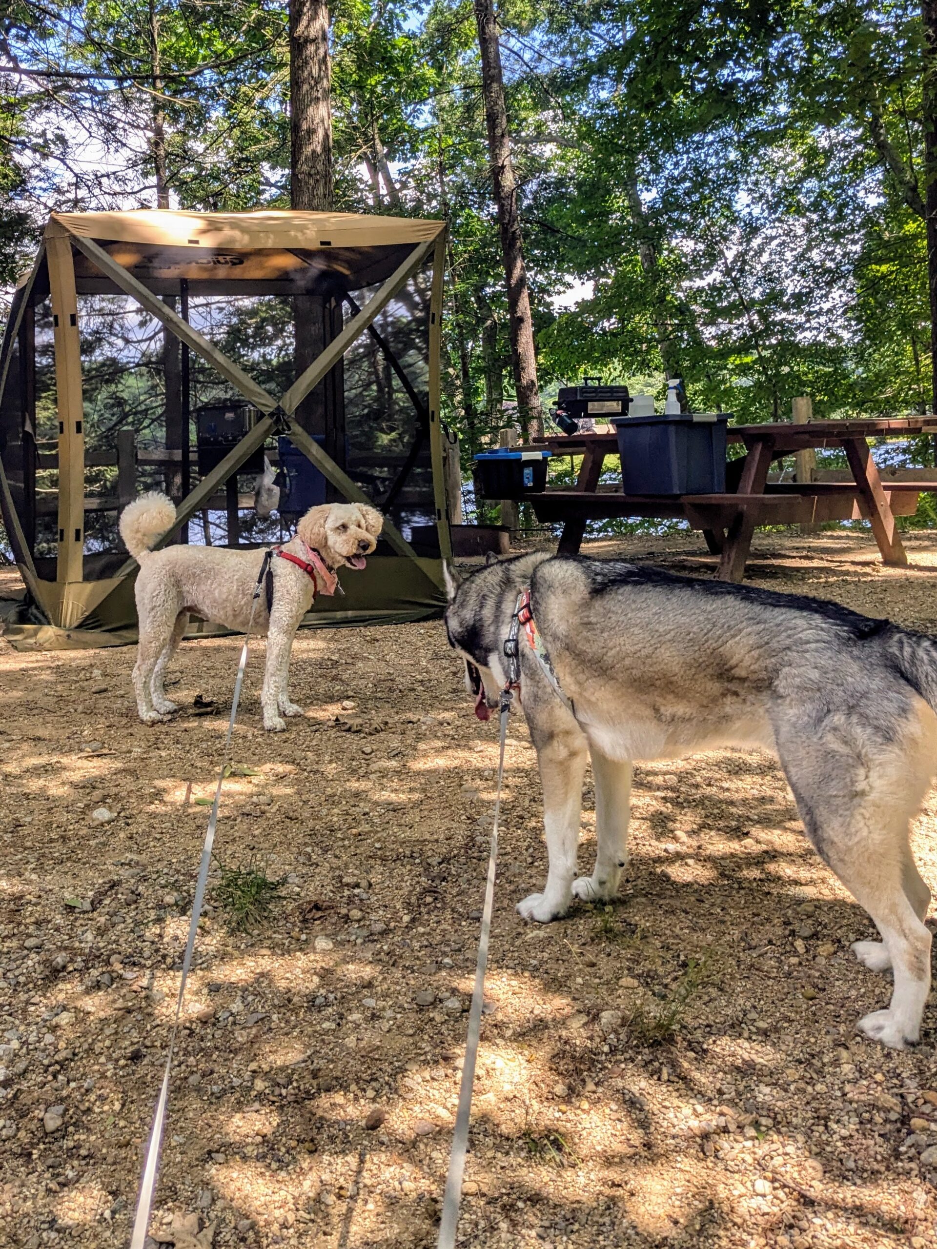 Having Millie join Packer today was a real treat! We took the campground loop around Wells so they could smell all the charcoal grills and check out all the kids! They were everyone’s favorites! Having a pal join you for a walk always makes Packer a happy camper! 🥰