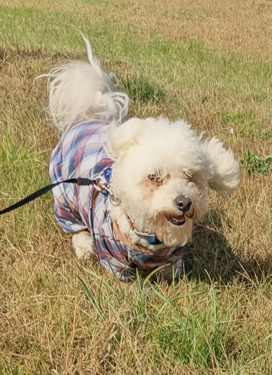 Mylo has his happy feet in today! We frolicked around and chased everything we could imagine the wind blew our way! It was a delightful walkies!